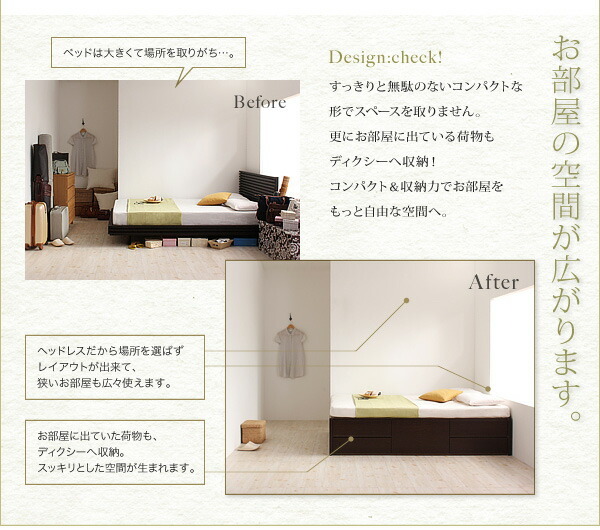 お客様組立 シンプルチェストベッド 薄型スタンダードポケットコイルマットレス付き ダブル