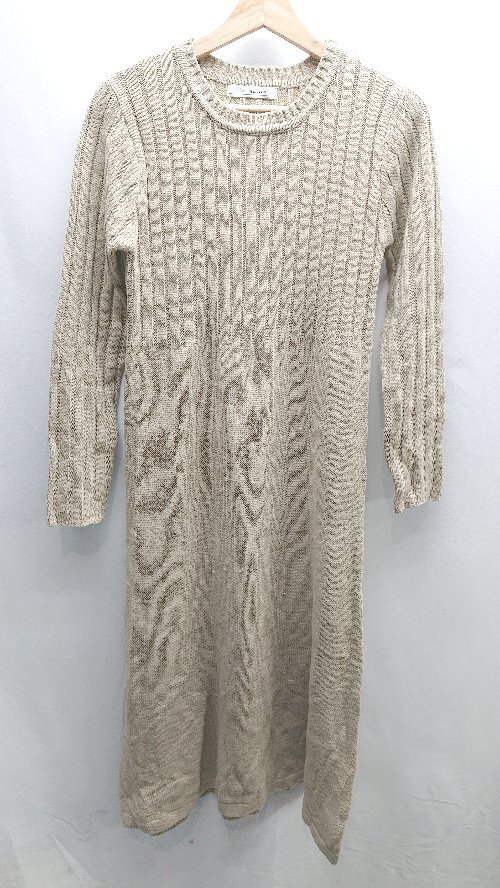 ■ un dix cors カジュアル ストレッチ素材 ニットロングワンピース ニットポンチョ サイズF ベージュ レディース E