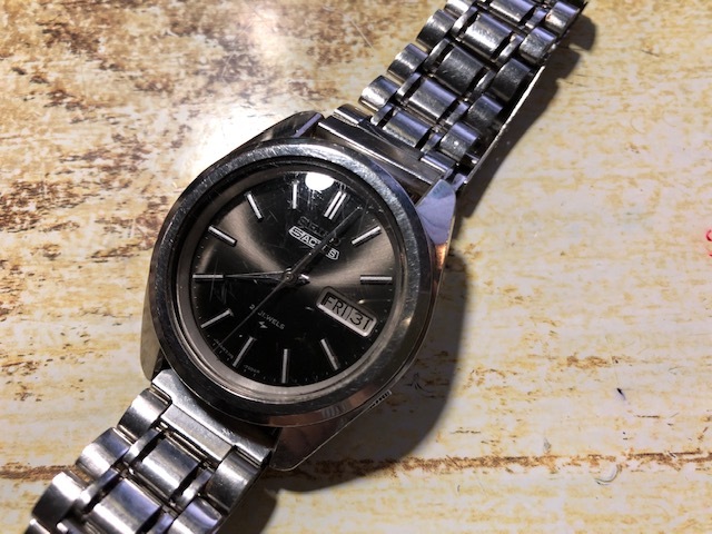 レア ヴィンテージ SEIKO 5 セイコー ファイブ ACTUS アクタス 21石 デイデイト 7019-7040 ミラー ブラック系 AUTO 自動巻 メンズ 腕時計