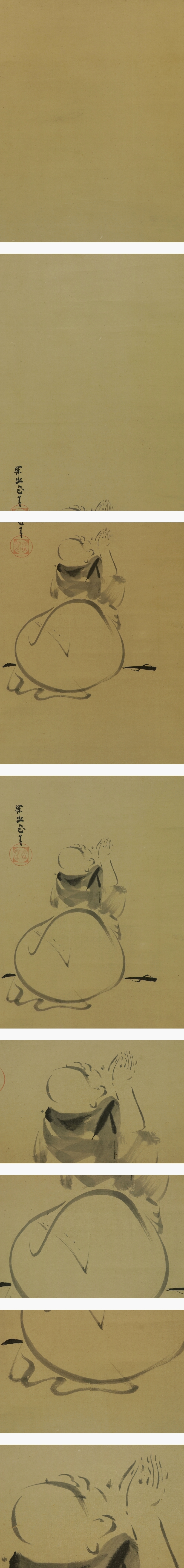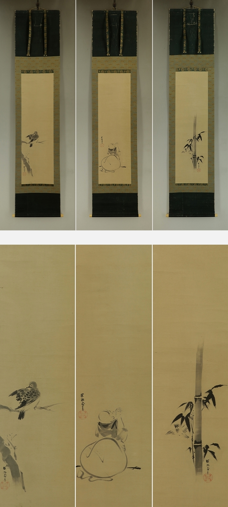 | №2404001【模写】狩野探幽【三対幅・布袋】◆紙本◆識箱◆掛軸 | |