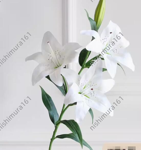 ★ゆり2本セット★花3頭蕾1個★造花★白いユリ★置物★ガーデニング★造園オーナメント★高さ約88cm★ハンドメイド