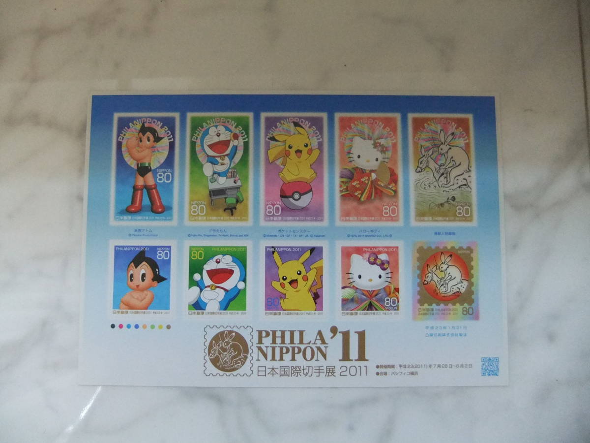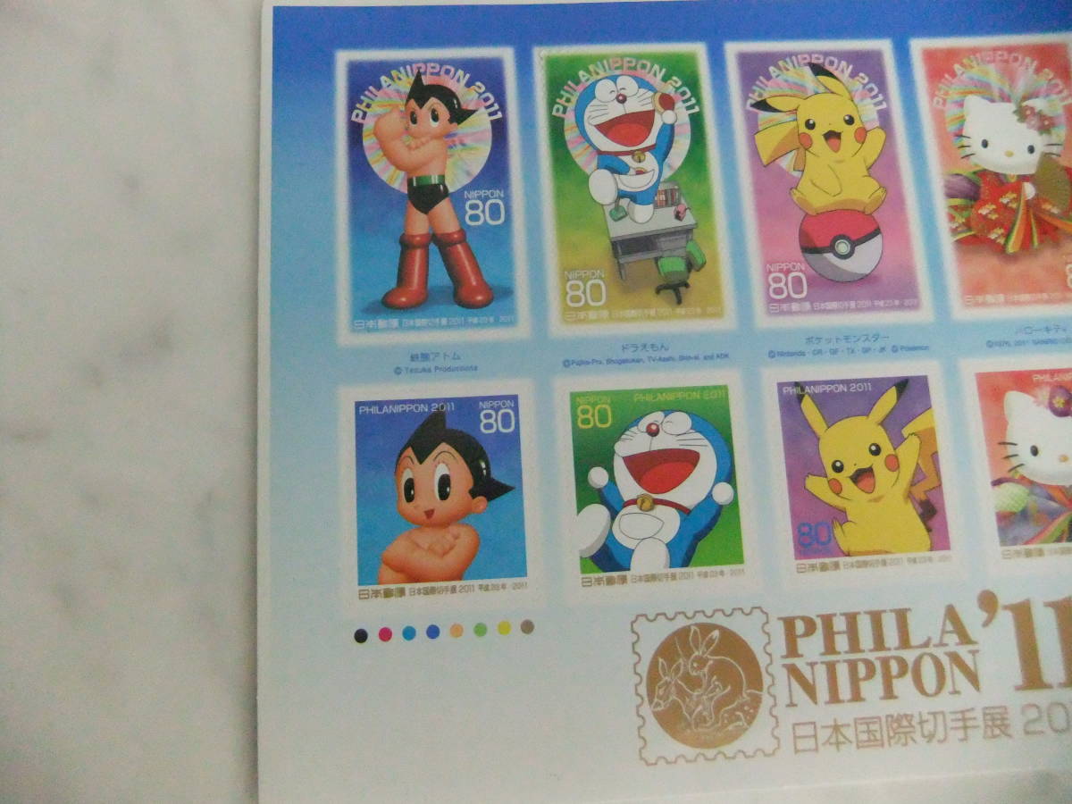 | 日本国際切手展2011 切手シート ドラえもん 鉄腕アトム ポケモン ハローキティ他 @80×10 平成23年1月21日 | |