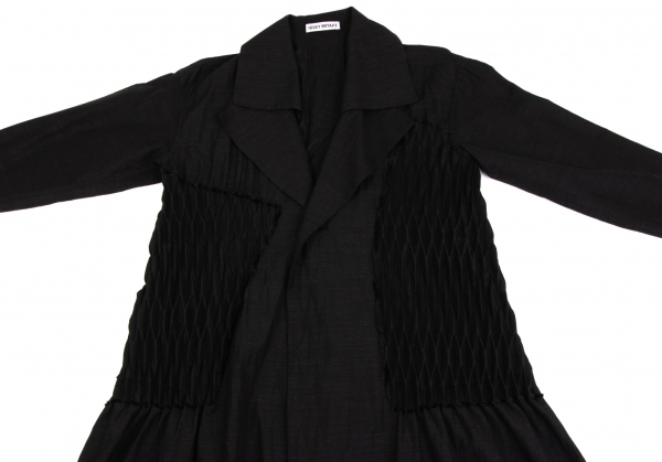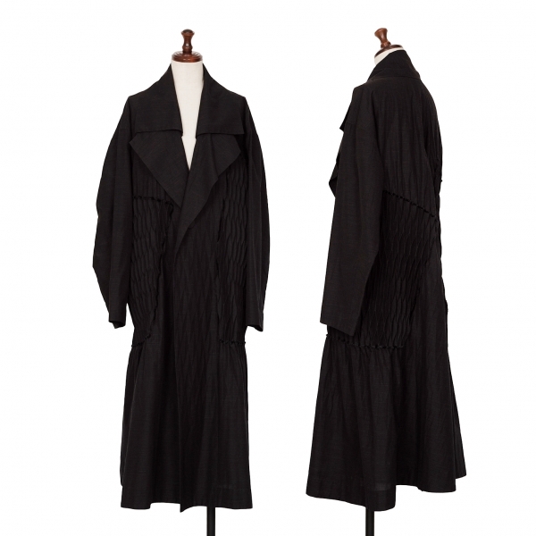 イッセイミヤケISSEY MIYAKE WOOL LEAFLET リーフレットプリーツ切替コート 黒L位 |