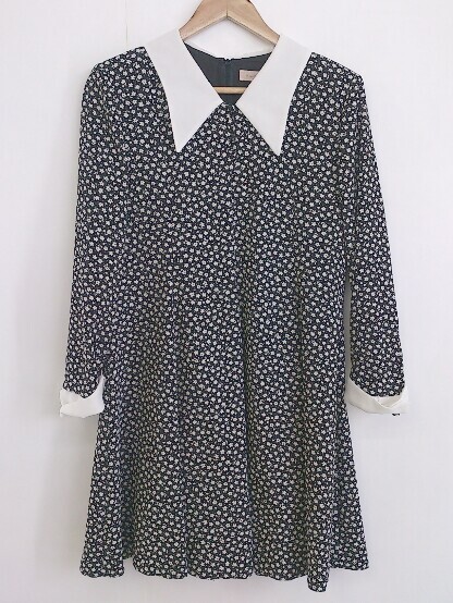 ◇ PEYTON PLACE ペイトンプレイス 花柄 長袖 ミニ ワンピース ブラック ホワイト系 レディース P