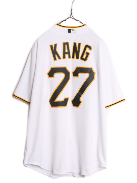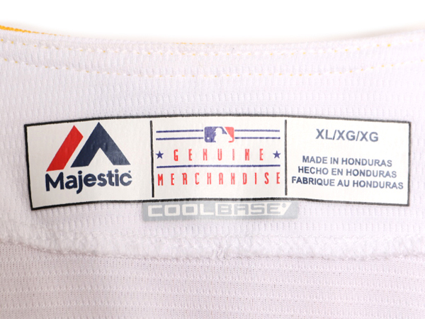 MLB オフィシャル PITTSBURGH PIRATES ピッツバーグ パイレーツの半袖ベースボールシャツです。 ボディーは、Majestic ATHLETIC( マジェスティック ) 1950年代創業、MLB公式ユニフォームのサプライヤーとして 全球団のユニフォームにロゴを配することを許可された唯一のブランド 素材は、100% POLYESTER (収縮性のある素材) 軽量で通気性の良い COOL BASE クールベーステクノロジーを採用 吸湿発散性のインターロック生地を使用しています フロントにMLB、人気チーム、パイレーツのワッペン バックに2015年~2016年、2018年~2019年活躍した Kang Jung-Ho ( 姜 正浩 / )のネームと背番号 27 韓国プロ野球から直接MLBへ移籍した最初の野手 ホワイト x ブラック x イエローの好配色のチームカラー そのままでももちろん、重ね着にもお勧め 中にパーカーやスウェットを差し込める 大きいサイズ XL 着まわしの利く商品です。 |