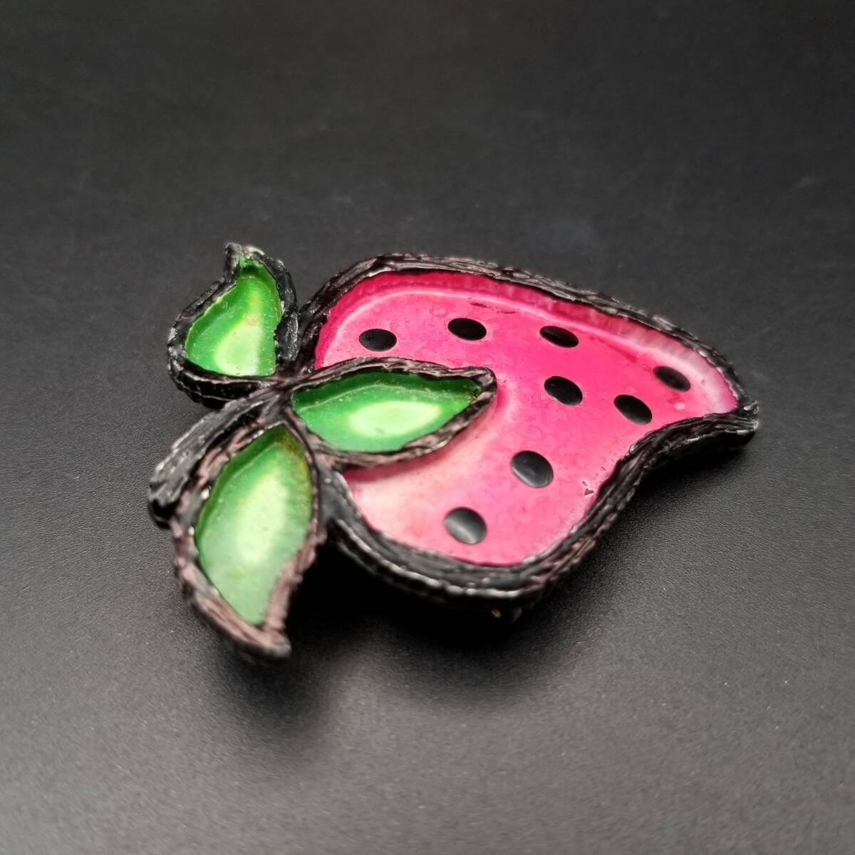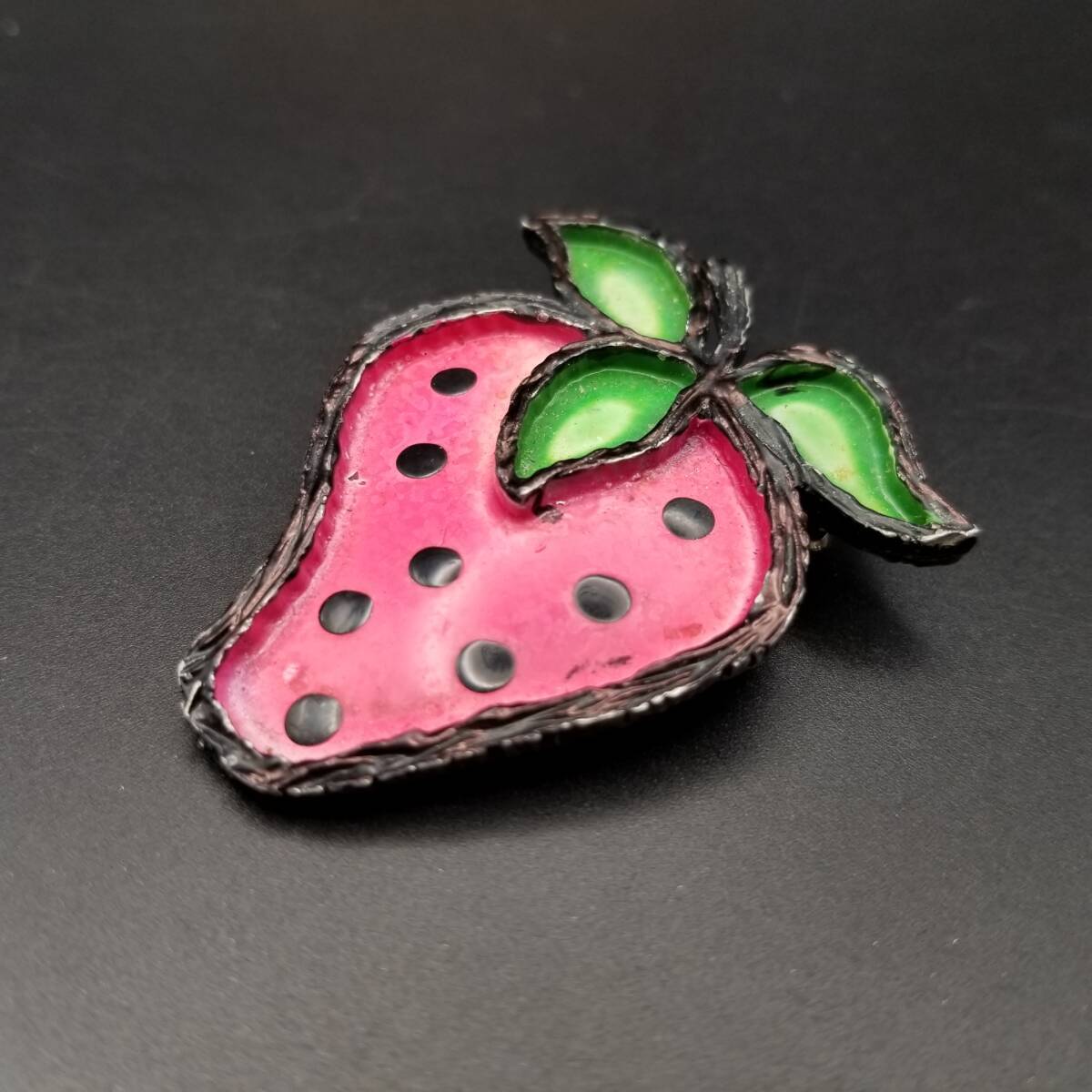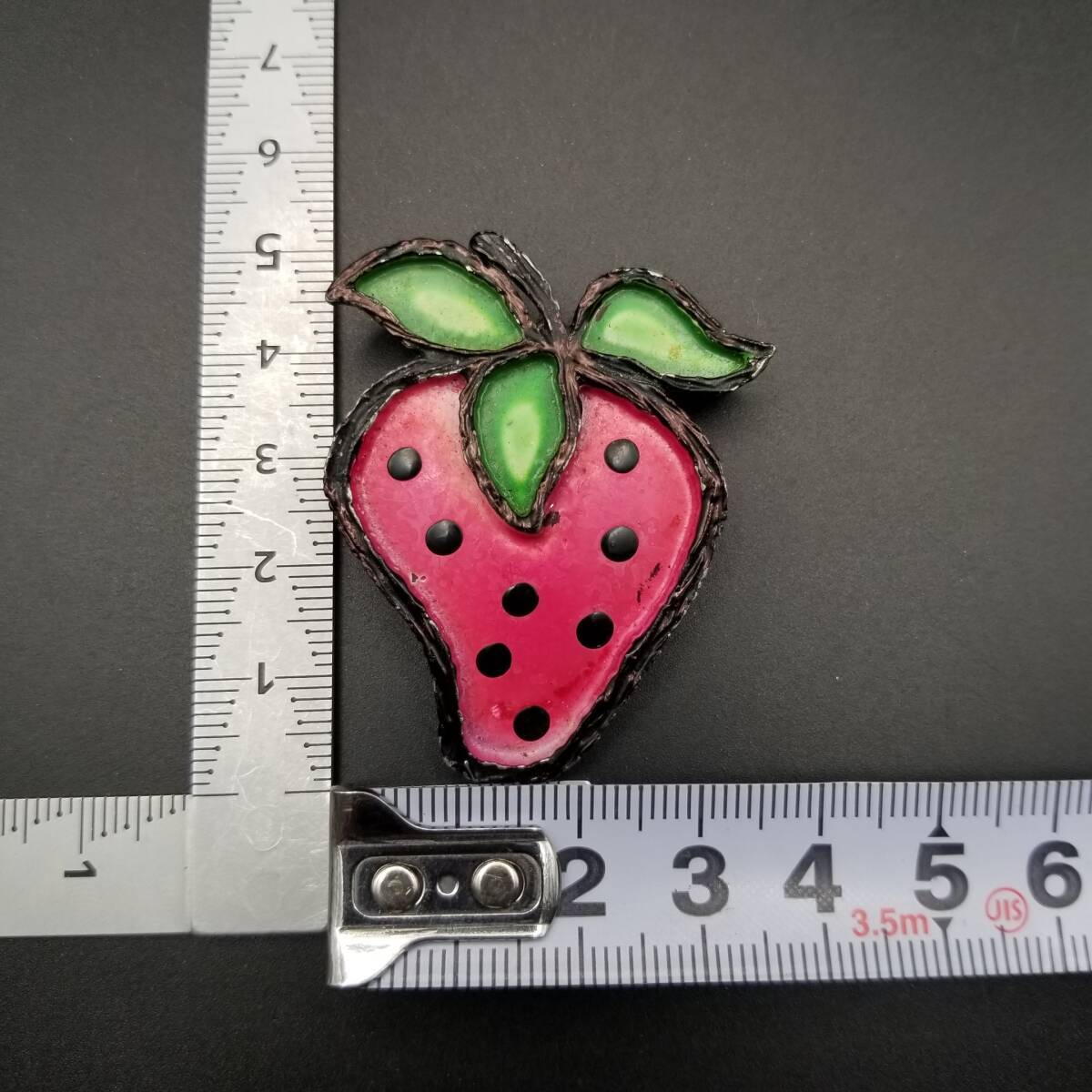 イチゴ ストロベリー 果物 モチーフ カラフル キュート 大ぶり 鮮やか ヴィンテージ ブローチ ジュエリー 輸入 Y16-G