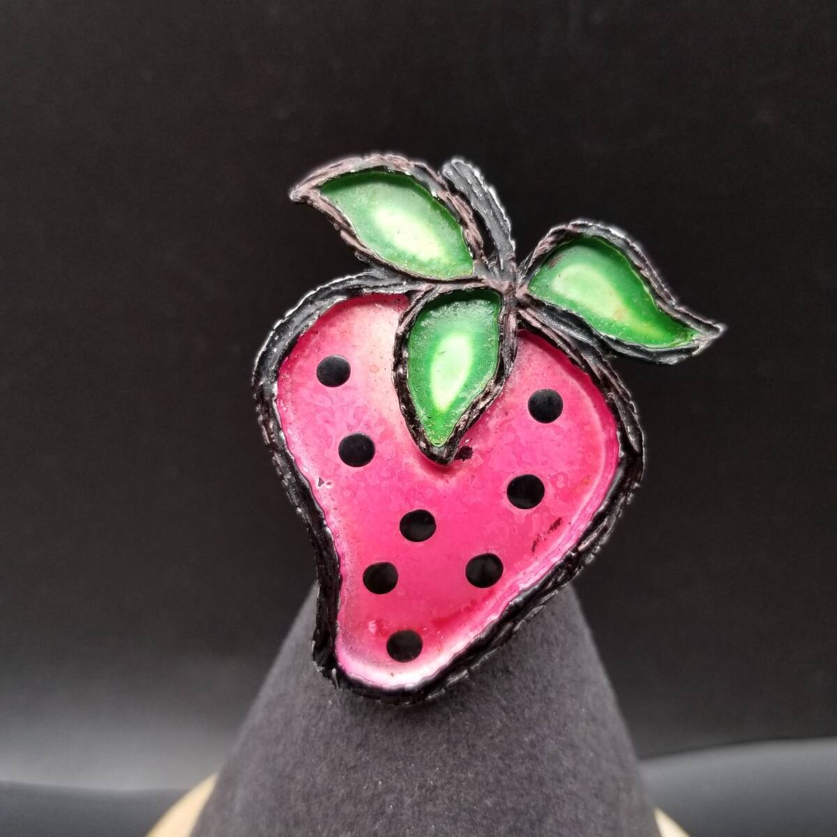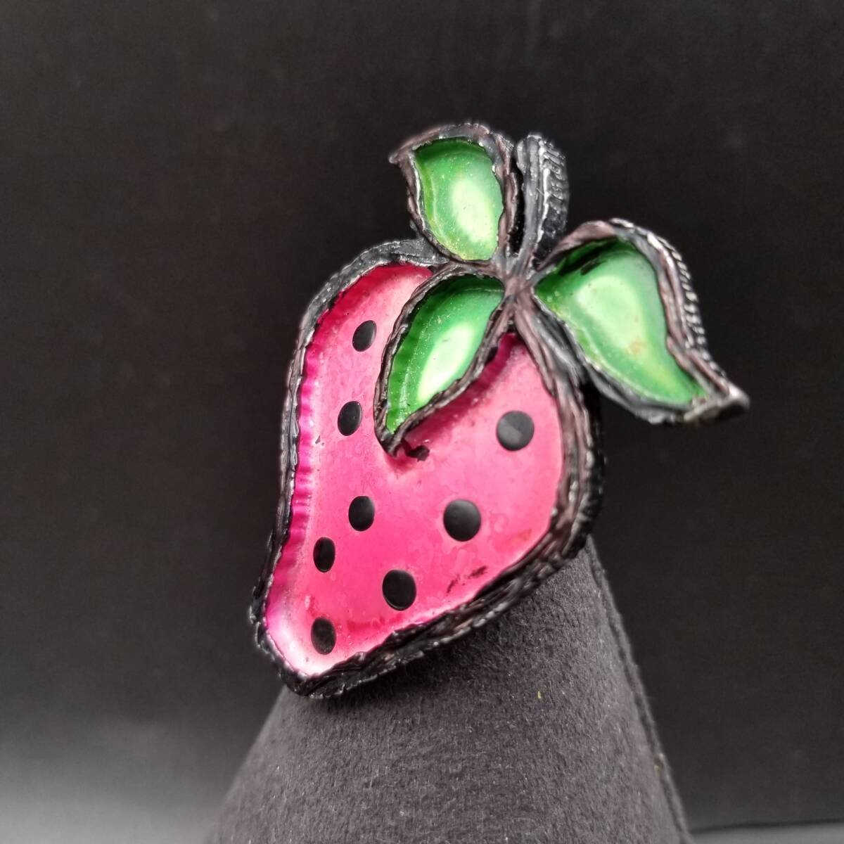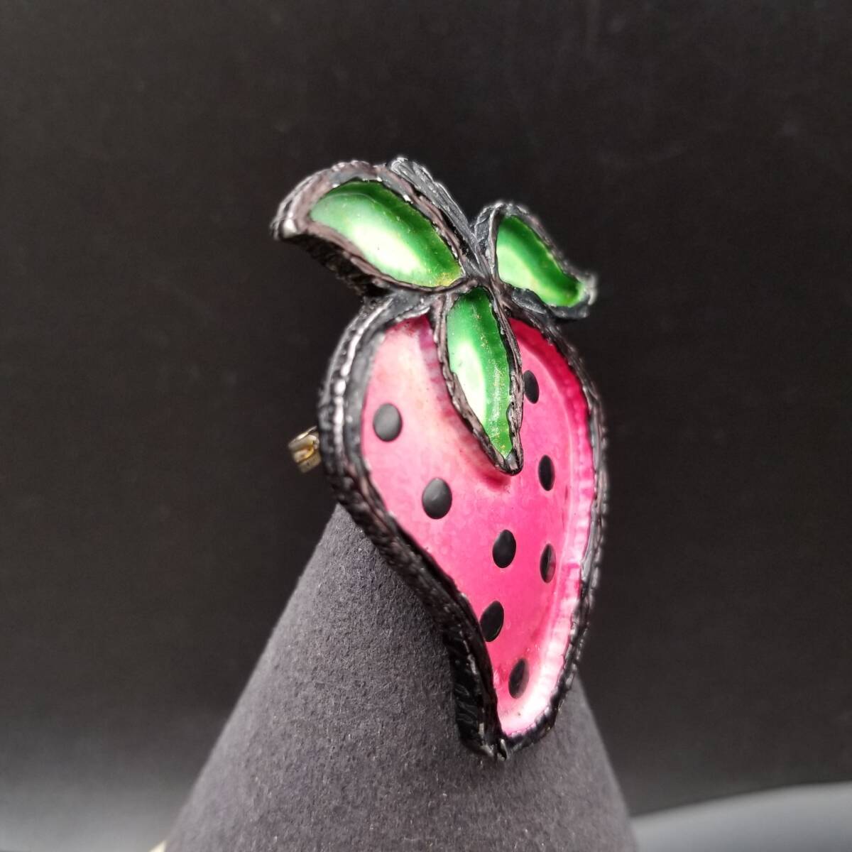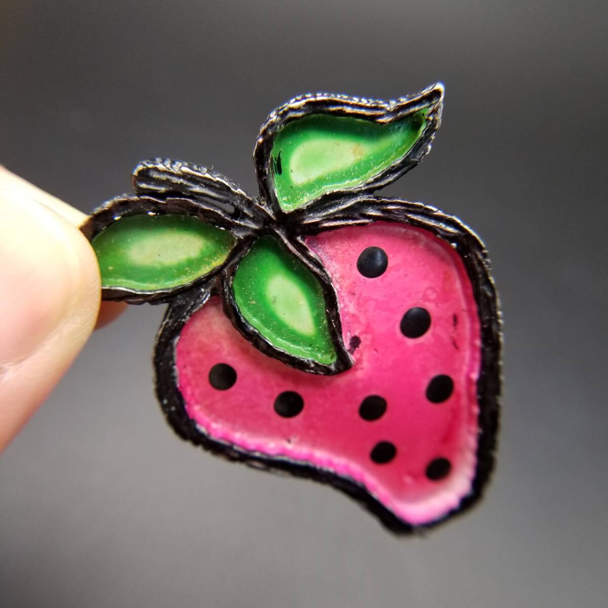 イチゴ ストロベリー 果物 モチーフ カラフル キュート 大ぶり 鮮やか ヴィンテージ ブローチ ジュエリー 輸入 Y16-G