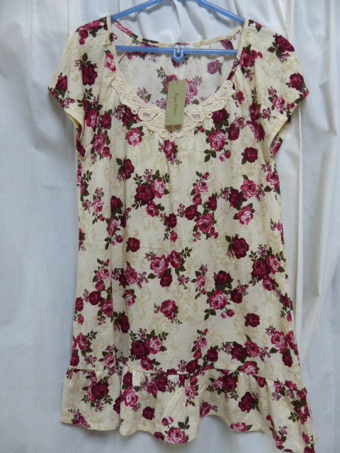 タグ付き未使用 薔薇ローズ柄チュニック Mサイズ