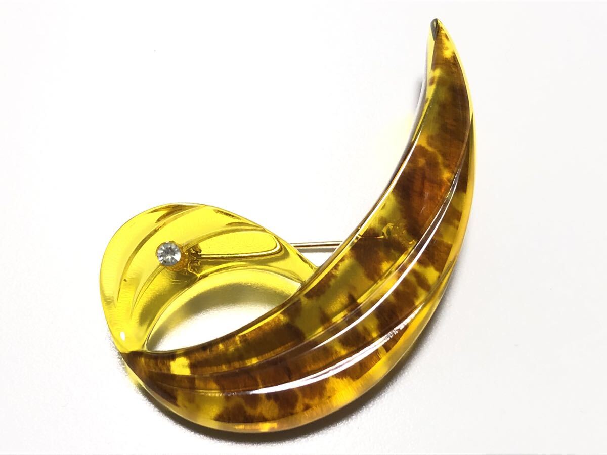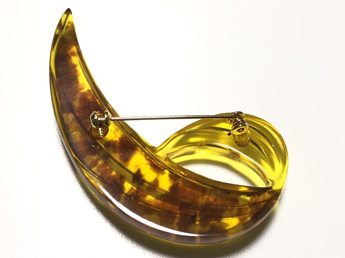 アンティークの鼈甲張を使用した、デザインブローチです。未使用品、鼈甲部分に虫食いは無く、状態良好です。未使用品ですが、長期保管品の為、状態は新品程ではありません。