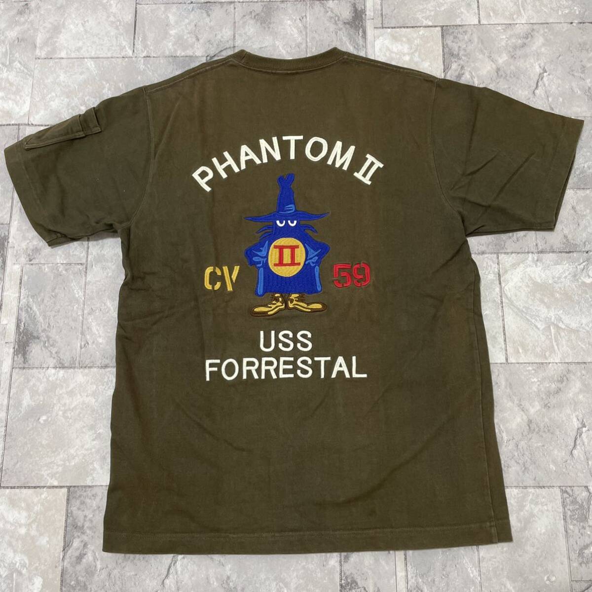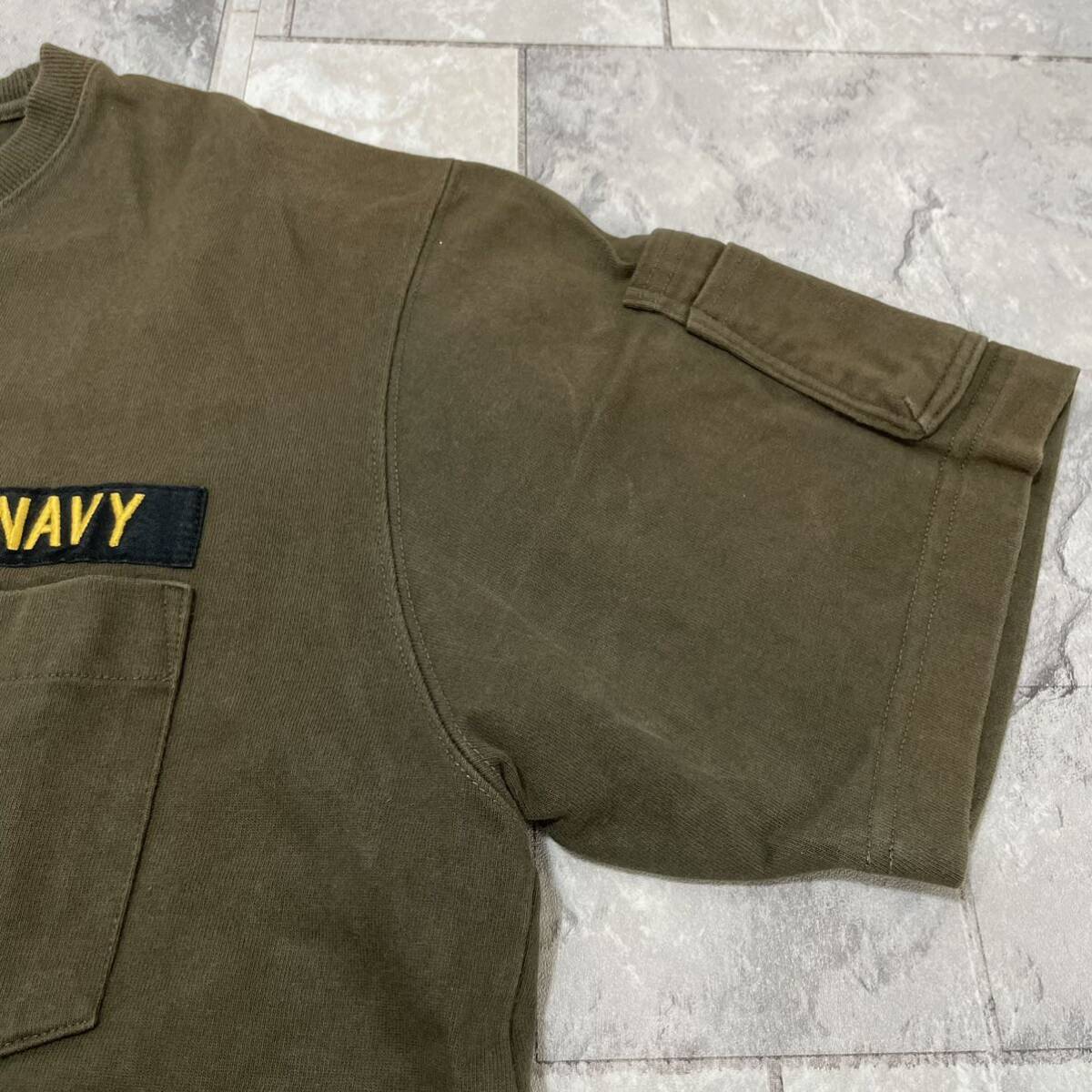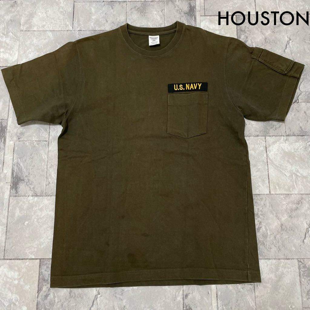 HOUSTON ヒューストン U.S.NAVY ミリタリー ポケットTシャツ T-shirt TEE 半袖 ヘビー 刺繍 ファントムII スクープ オリーブ 玉SS1871