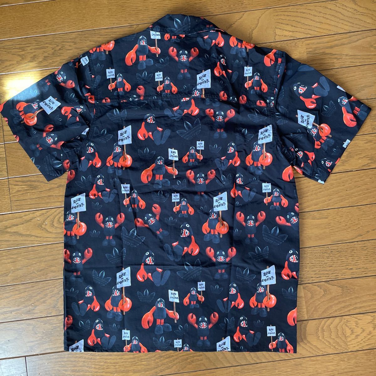 ロブスターのプリントをあしらった半袖ボタンアップシャツ。