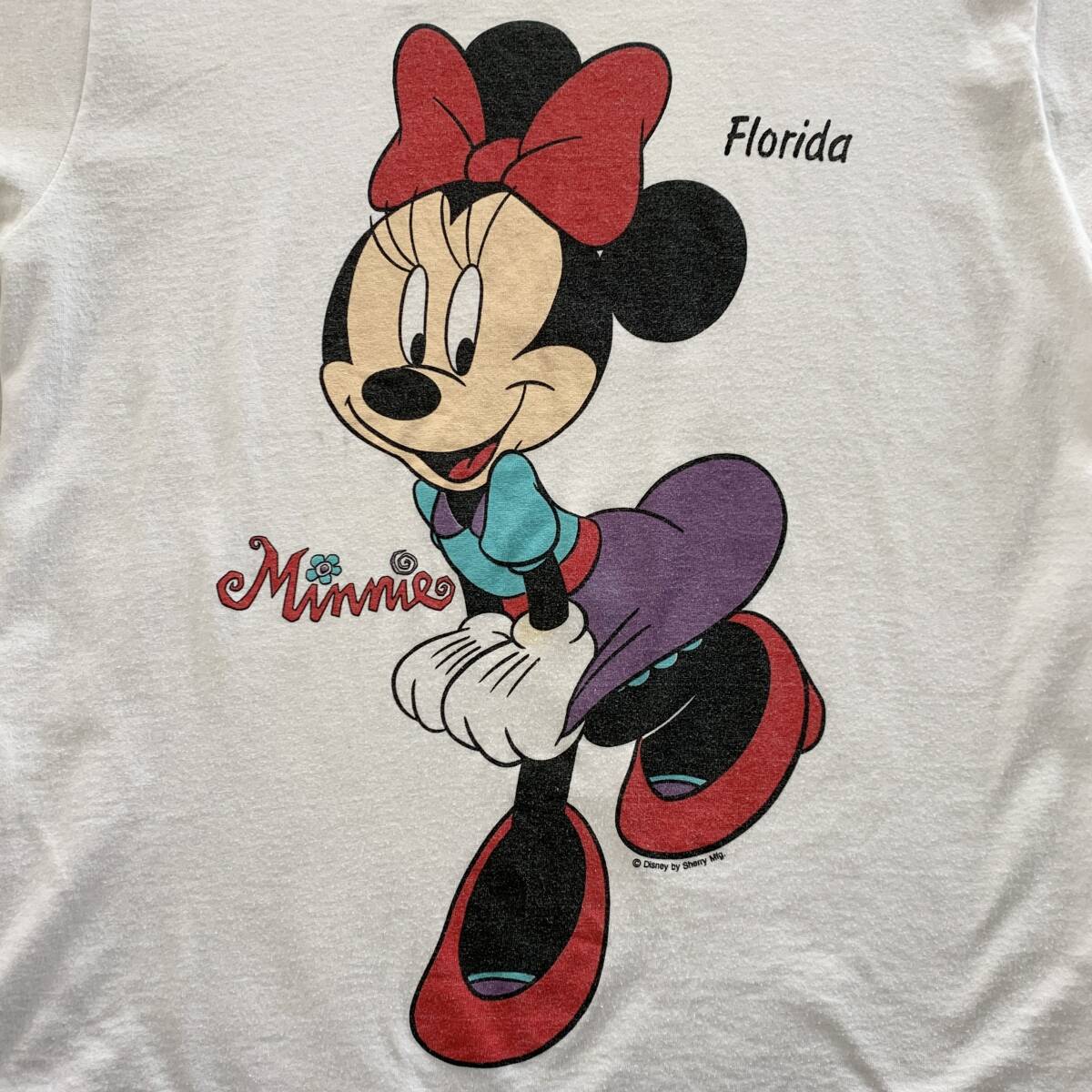 ☆Disney ディズニー SHERRY'S BEST ミニー 90s USA製 Vintage 大判プリント 半袖Tシャツ ホワイト サイズM【レターパックライト郵送可】J