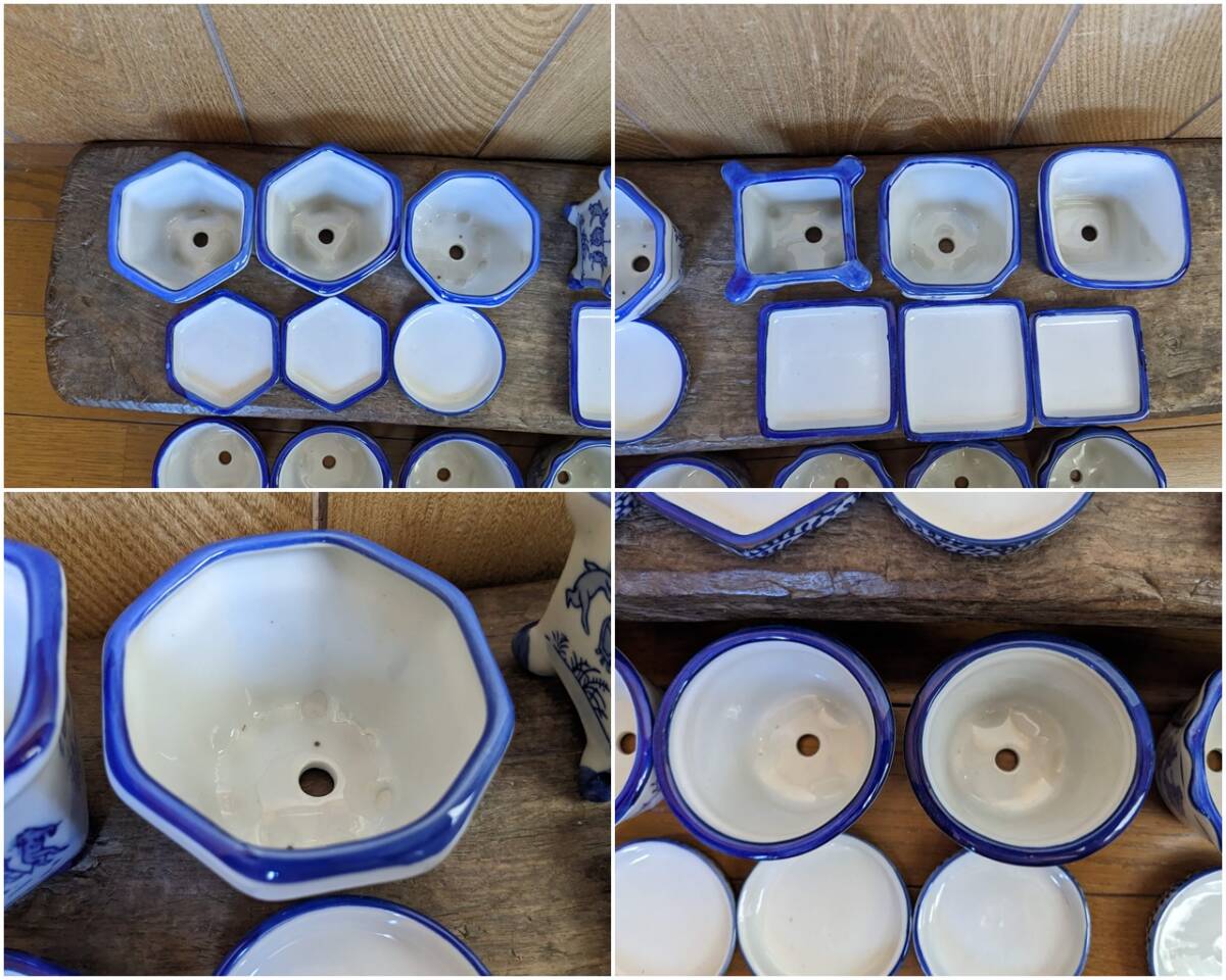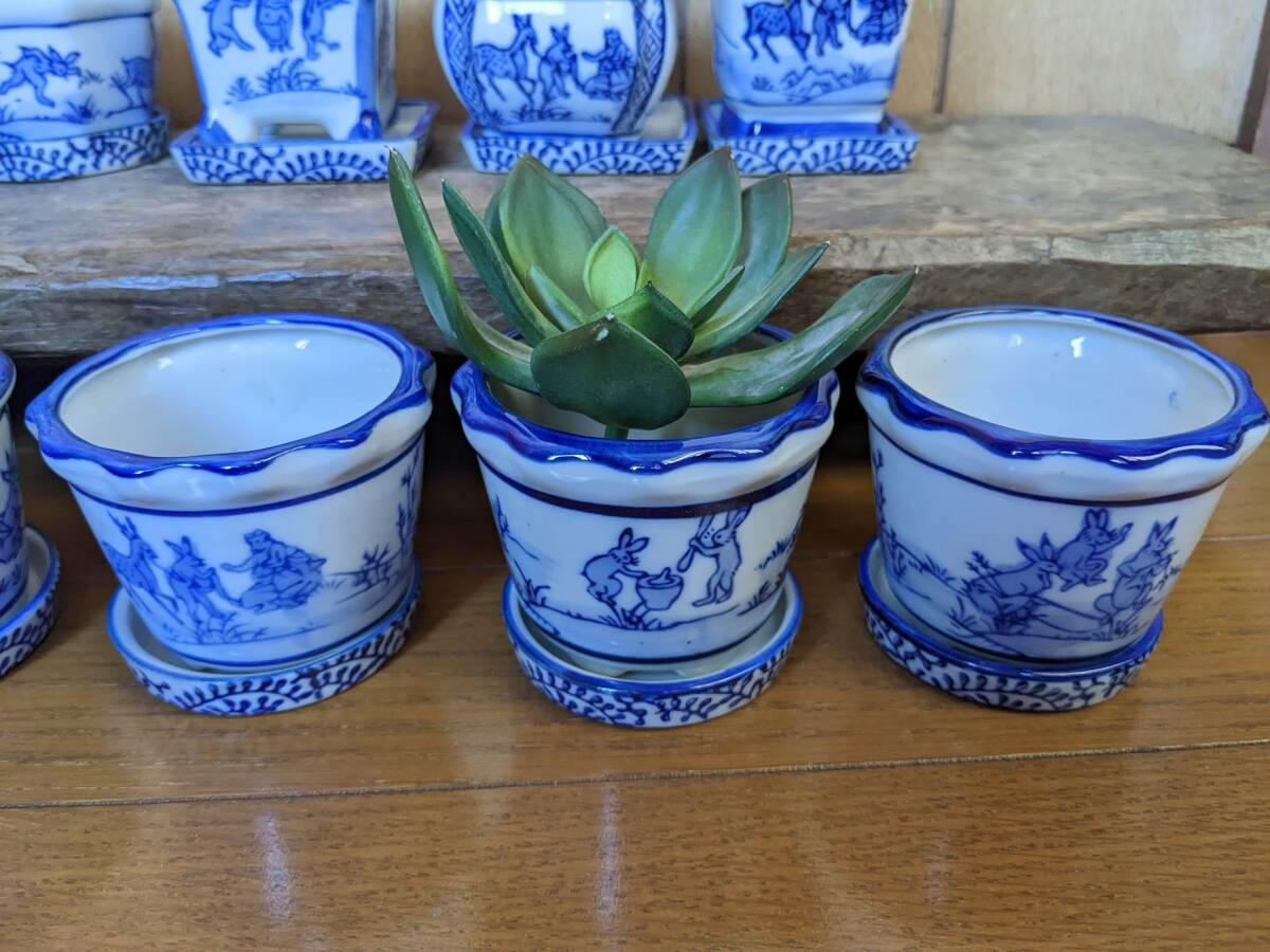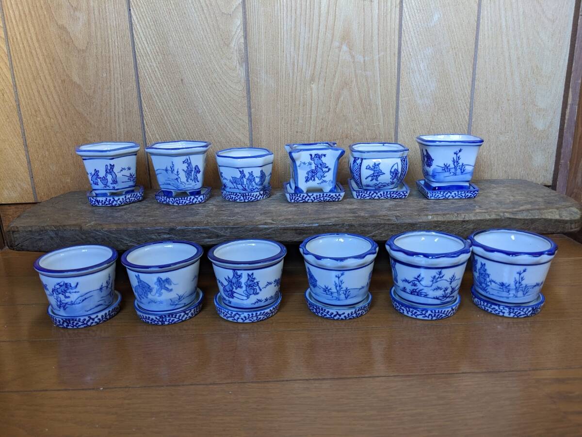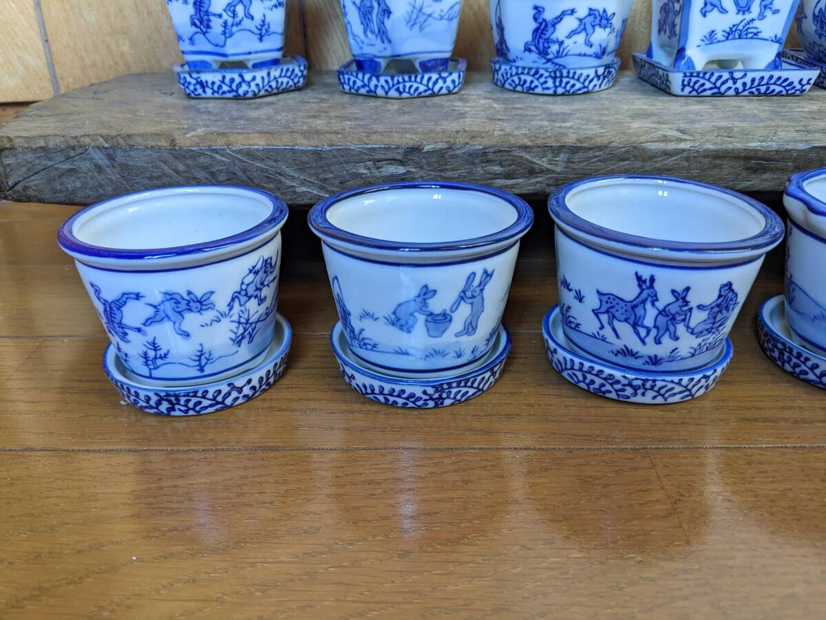 【鳥獣戯画 植木鉢 お得な12種セット】12個 穴有り 皿付 多肉植物 観葉植物 かえる うさぎ 蛙 兎 染付 鉢カバー