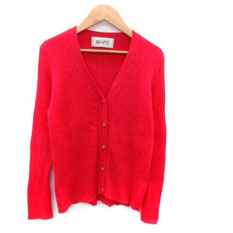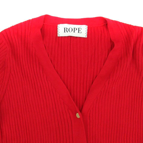 ロペ ROPE ニットカーディガン リブ Vネック ミドル丈 38 M 赤 レッド /HO34 レディース
