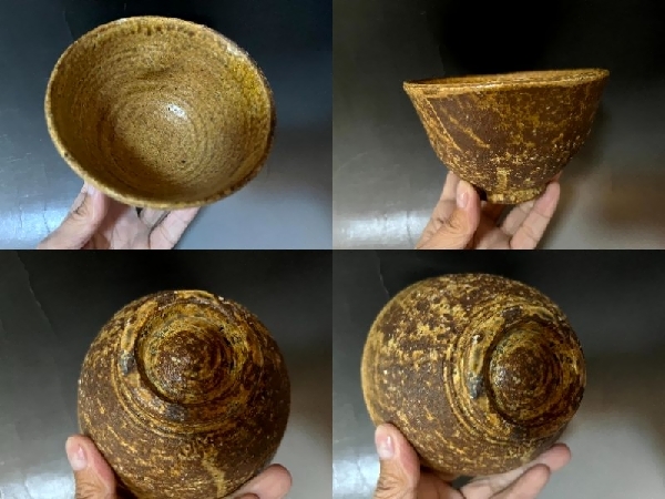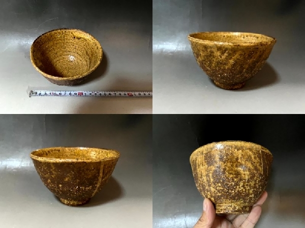 茶碗■古い伊羅保茶碗 えくぼ お茶道具 古美術 時代物 骨董品■