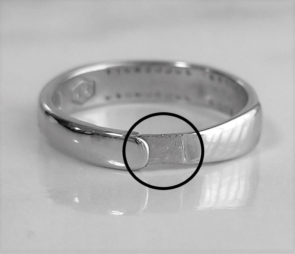 ●リングサイズを拡大するためにサイズ調整部分を広げるとロジウム加工されていない部分(画像6のリングサイズを伸ばす部分のみ)があります。