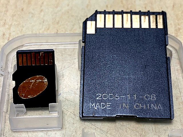●写真の通り、SDカードに変換できるアダプター付き。変換アダプターの文字は剥げて一部消えています。ケース入り。ケースは使用感があります。