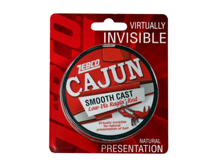 ゼブコ Zebco の純正ナイロンライン、ケイジャン・スムースキャスト CAJUN SMOOTH CASTのロービス赤 Low-Vis Ragin's Red です。 USA-8Lbsの330yds(300m)巻で、ライン径は0.279mmですのでおおよそ2.75号になります。 ゼブコの上級モデルに巻かれている赤いラインで、ロービス赤は魚から見えにくいラインになります。なおこのラインはアメリカから輸入したUSA仕様品です。 日本とアメリカではLbsの基準が異なり、日本は引っ張り強度を、アメリカでは結束強度を採用しています。 そのため同じLbsでも国産ラインよりこのラインのほうがかなり太く(強く)なります。 どうぞこの点をご認識の上でご注文をお願いします。
