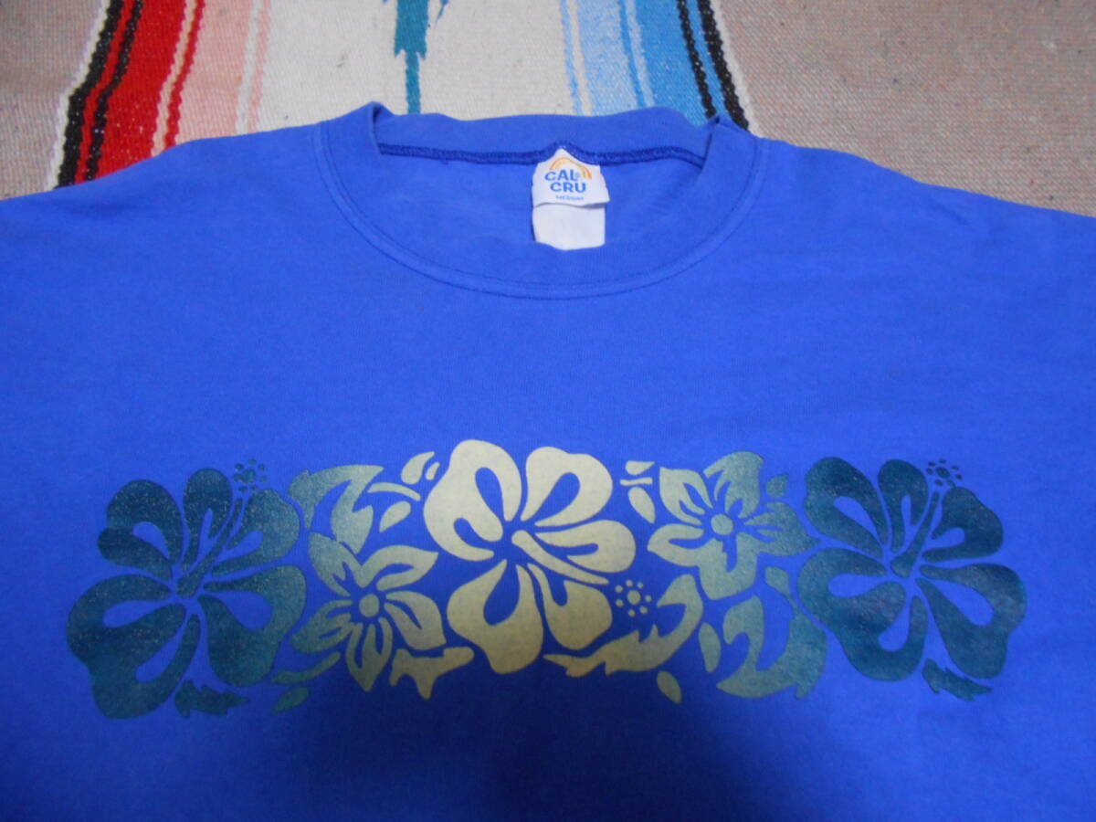 1990年代初頭製、「CAL CRU」ハイビスカス オールドサーフ ビンテージ オリジナル Tシャツ MADE IN USA