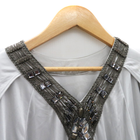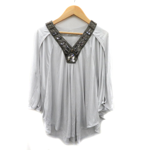 ピンキー&ダイアン ピンダイ PINKY&DIANNE カットソー 七分袖 Vネック ドルマンスリーブ 無地 38 M ライトグレー レディース