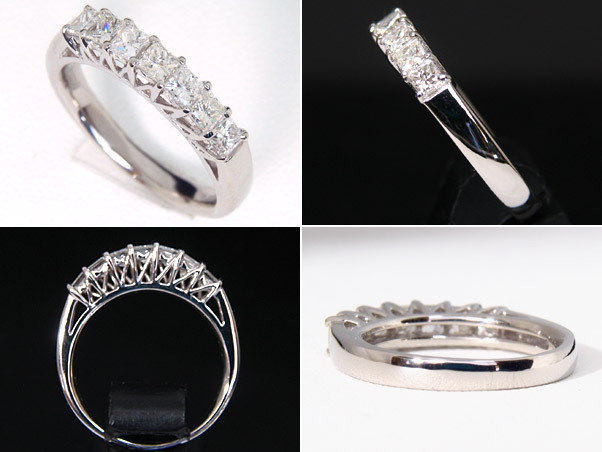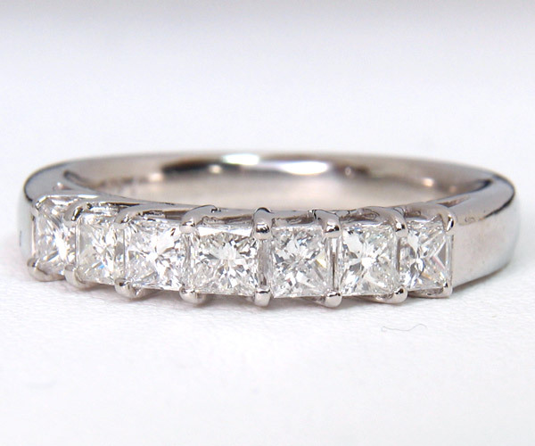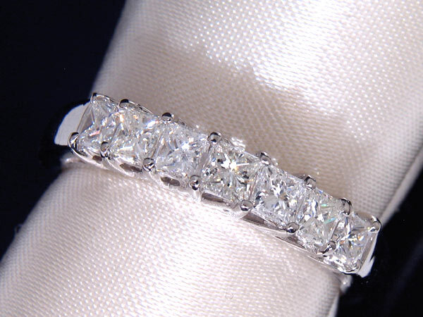 大粒プリンセスダイヤが7P、ハーフエタニティーデザインです。