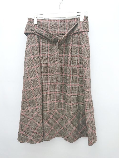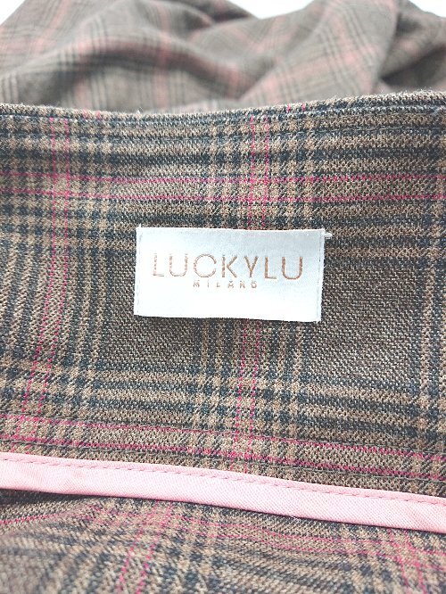◇ ◎ Luckylu?Milano チェック ティアード かわいい 膝下丈 フレア スカート ブラウン レディース P