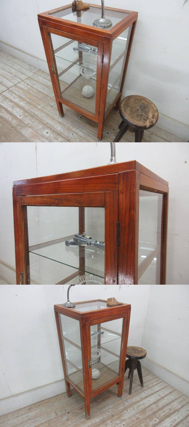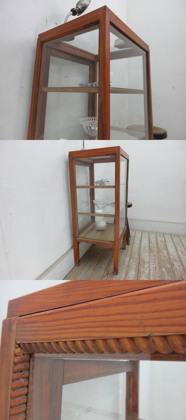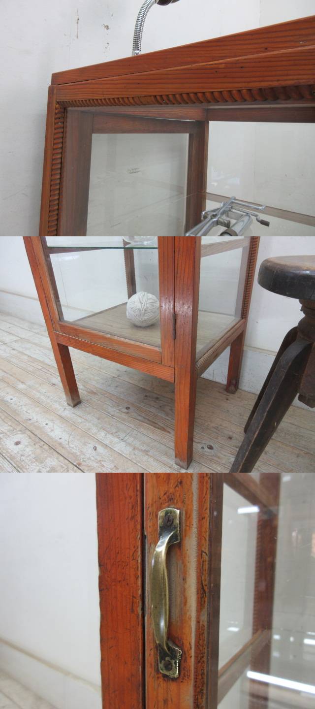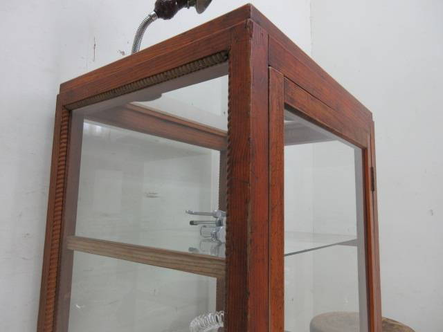 古い木味の脚付き縦型パンケースH489  アンティーク家具ガラスケース陳列棚収納棚カウンターケビント店舗什器カフェ什器古家具無垢材