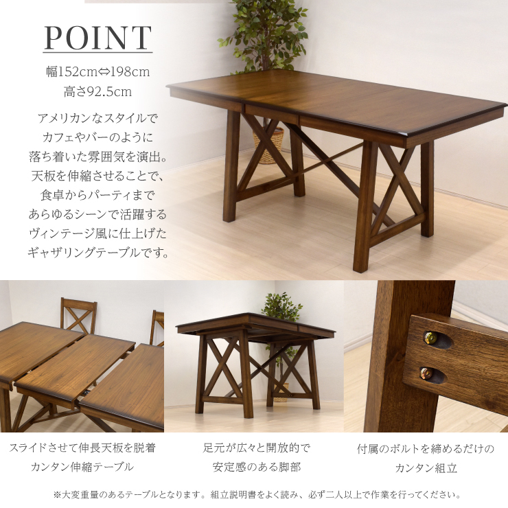 伸長式ダイニングテーブル 6 7 8人掛け 幅152/198cm abik152-350 アメリカン ギャザリングテーブル 長方形 アウトレット 16s-1k-298 tw