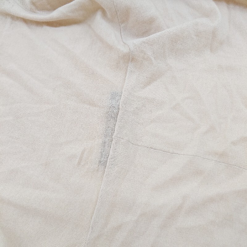 襟、首周り、肩、脇に黄ばみや変色あり。