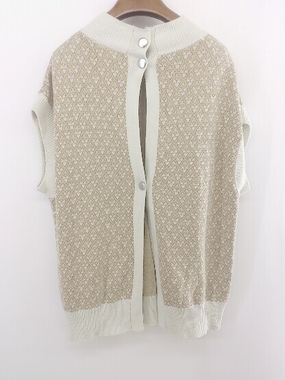 ◇ BONLECILL 総柄 ニットベスト サイズF ベージュ系 レディース E