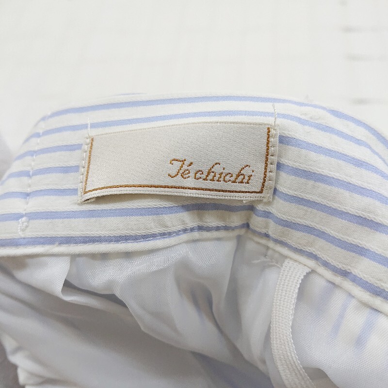 ◇ ◎ Techichi テチチ ストライプ タック 膝下丈 フレア スカート サイズM ホワイト系 ブルー系 レディース P