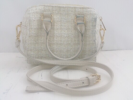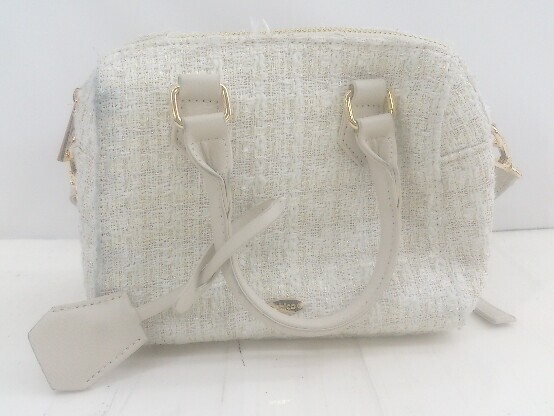 ◇ who's who Chico フーズフーチコ 2WAY ツイード調 ハンド ショルダー バッグ ホワイト ゴールド系 レディース E