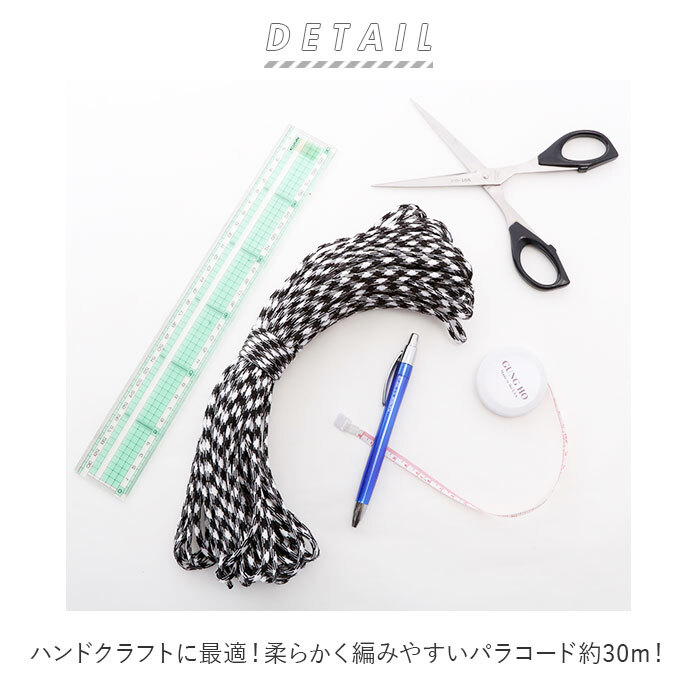商品説明 | ・ハンドクラフトに最適!柔らかく編みやすいパラコード約30m! ・わんちゃんのリード用や、ブレスレットなどのハンドメイド用に★ ・柔らかいので複雑な編み方もラクラク♪鮮やかなネオンカラーから落ち着いたダークカラーまで揃っているから、ワンカラーで編んでもバイカラーで編んでも◎。 ・プチプラなので、色んなカラーを揃えて素敵なハンドメイドライフを楽しんで♪ ※こちらはハンドメイド用の商品となります。キャンプや登山など、アウトドアでのご利用はお控え下さい。 |
