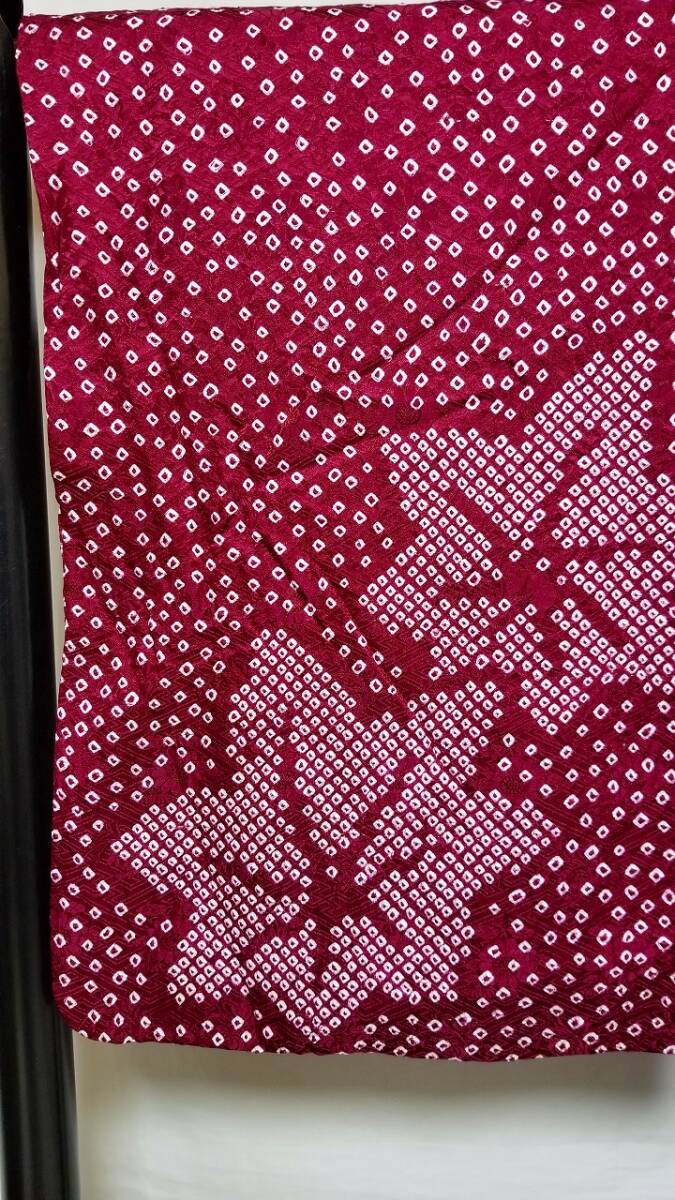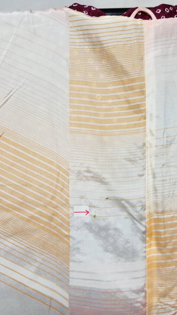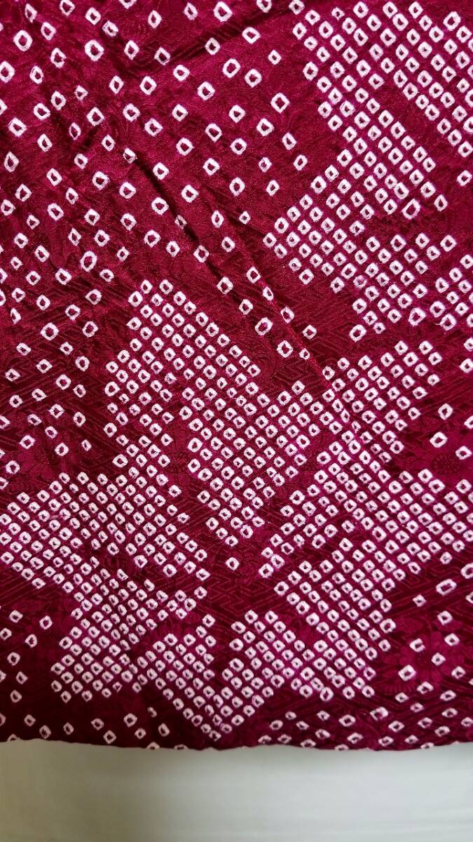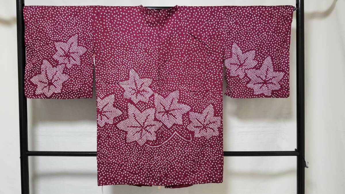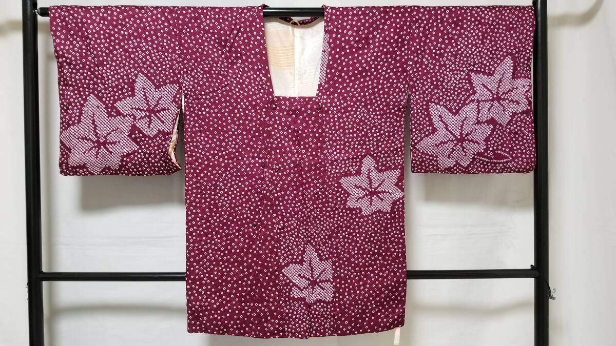 *中古品 *着用感は」あまり感じられません *検品済 *訳有品 {訳有} ☆表地は美しい状態ですが.裏地にシミあり ◎くれぐれも中古品にご理解あるお方の入札お願いします {生地} ☆正絹 紋綸子地 重目地「幾何学.地紋」 ☆コ-ト重さ 約480g {地色} ☆濃い赤紫色地{暗紅色}に.白色の手絞りの鹿の子文様地 {文様} ☆白色.手絞りの楓文様 {コ-ト裏地} ☆正絹 羽二重地{白地}*美品 ☆友禅染の幾何学文様 {寸法} コート丈 {肩から裾まで} 約90cm 裄丈 約68cm 袖丈 約47.5cm 袖幅 約34.5cm 前幅 約21cm 後幅 約31cm 衿幅 約5.5cm *道行衿 *胸ポケット付き (発送方法) ●大阪から ゆうぱっく発送 80サイズ{補償あり}**おてがる配送 ◎消費税は.お預かりしておりません◎ ◎t6227jp 桐輪 「呉服の桐正」でも色々と出品しております {注意事項} 注意事項 必ずお読みください! ★基本的に土、日、祝日、ゴールデンウィーク、お盆、年末年始はお休みさせて頂いておりますので、ご連絡が遅れる場合もございますので、ご了承ください。 ★どうぞ自己紹介欄も、是非御覧になって下さいませ。 ★落札後にヤフーから届くメールに、メッセージを記載しておりますので、そちらも必ずご覧下さいませ。 ●当方、ストア出品ではなく、一日中パソコンに向かっておらず、ご連絡は夜になる事が多いです。その点御理解の上、ご入札下さい。 ●お急ぎの場合など、到着希望の日にちが特に近い場合、ご要望にお答えできかねる場合もございます。もちろん、出来る限り、早急に対応はさせて頂きますが、 その点は、何卒ご了承下さいませ。 入札前に、発送が間に合うかご質問頂けるとありがたいです ★★基本的に返品、クレームはお受け致しておりませんが、万が一、商品に不都合(大幅な寸法間違い 記載以外の着用不可能な位の、大きなシミ、傷みなどの見落とし)などがございました場合、まず、取引ナビにてご連絡下さいませ。迅速に対応させて頂きます。 ただし ●商品がお客様の元に到着後、1週間以上経過したもの。 ●お客様側で加工など、手を加えた物。 ●お色目が、思っていたものと違っていた、または、思っていた感じと違っていた。 (画像はできるだけ実物に近い色で写るように努力していますが、素人の撮影ですので、どうしてもPCによって多少違ってくる事があります。 出来るだけ、分かりやすいように説明は入れさせて頂きます。分かりにくい場合、ご質問下さい。) 以上につきましては、対応出来ませんので、ご理解下さい。 ★複数商品の落札予定のある場合、ご連絡頂きましたら、1週間程でしたら、お取り置させて頂きます。 お気軽に、お申し出下さいませ。 ★送料は、1個で発送が無理な場合は、こちらよりご連絡させて頂きます。 | |||