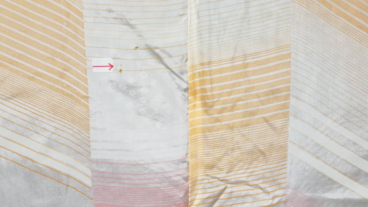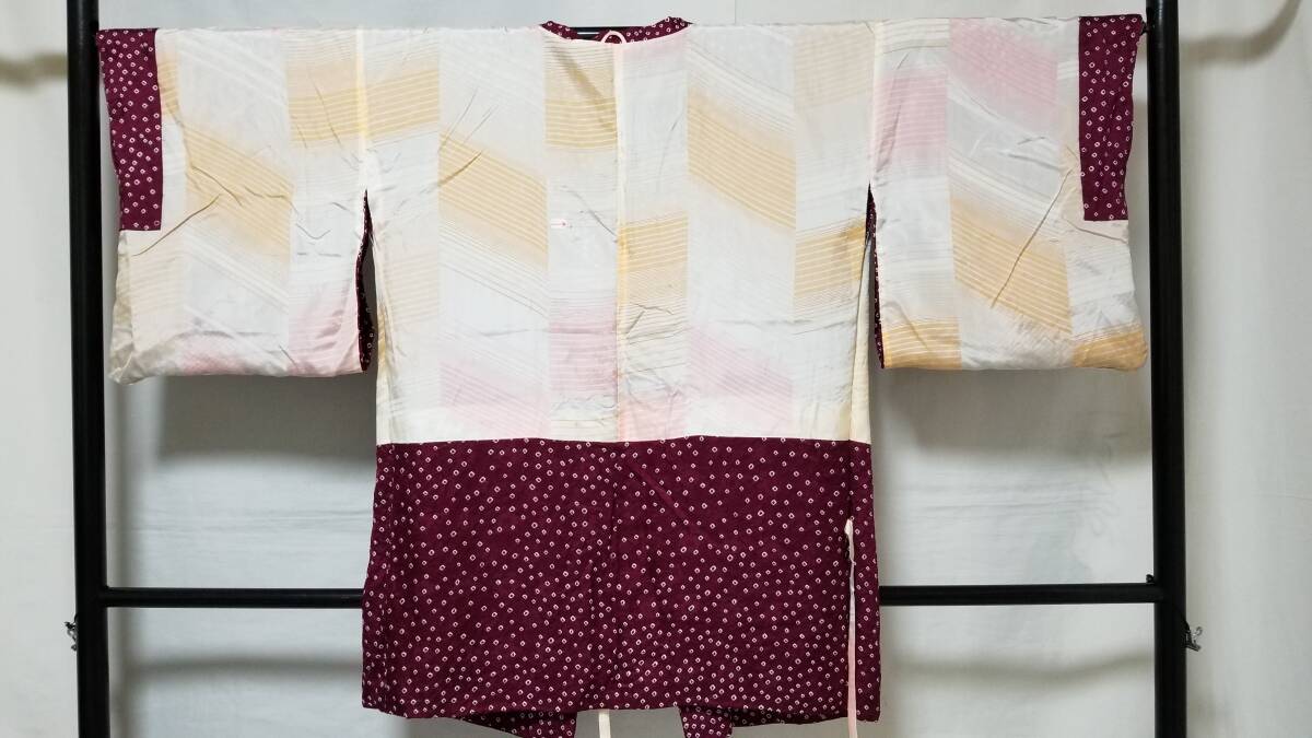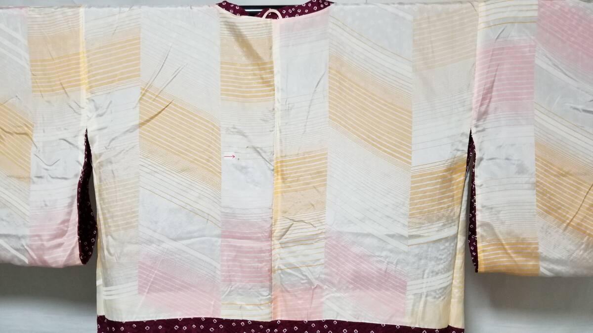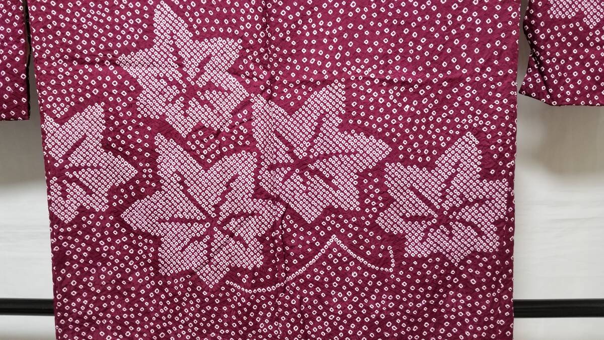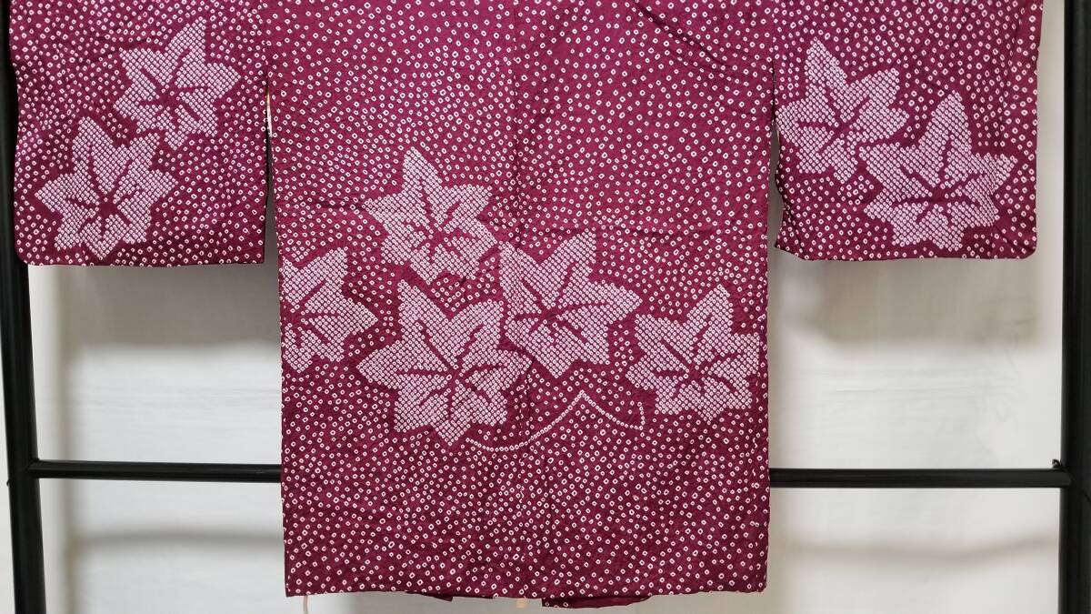 *中古品 *着用感は」あまり感じられません *検品済 *訳有品 {訳有} ☆表地は美しい状態ですが.裏地にシミあり ◎くれぐれも中古品にご理解あるお方の入札お願いします {生地} ☆正絹 紋綸子地 重目地「幾何学.地紋」 ☆コ-ト重さ 約480g {地色} ☆濃い赤紫色地{暗紅色}に.白色の手絞りの鹿の子文様地 {文様} ☆白色.手絞りの楓文様 {コ-ト裏地} ☆正絹 羽二重地{白地}*美品 ☆友禅染の幾何学文様 {寸法} コート丈 {肩から裾まで} 約90cm 裄丈 約68cm 袖丈 約47.5cm 袖幅 約34.5cm 前幅 約21cm 後幅 約31cm 衿幅 約5.5cm *道行衿 *胸ポケット付き (発送方法) ●大阪から ゆうぱっく発送 80サイズ{補償あり}**おてがる配送 ◎消費税は.お預かりしておりません◎ ◎t6227jp 桐輪 「呉服の桐正」でも色々と出品しております {注意事項} 注意事項 必ずお読みください! ★基本的に土、日、祝日、ゴールデンウィーク、お盆、年末年始はお休みさせて頂いておりますので、ご連絡が遅れる場合もございますので、ご了承ください。 ★どうぞ自己紹介欄も、是非御覧になって下さいませ。 ★落札後にヤフーから届くメールに、メッセージを記載しておりますので、そちらも必ずご覧下さいませ。 ●当方、ストア出品ではなく、一日中パソコンに向かっておらず、ご連絡は夜になる事が多いです。その点御理解の上、ご入札下さい。 ●お急ぎの場合など、到着希望の日にちが特に近い場合、ご要望にお答えできかねる場合もございます。もちろん、出来る限り、早急に対応はさせて頂きますが、 その点は、何卒ご了承下さいませ。 入札前に、発送が間に合うかご質問頂けるとありがたいです ★★基本的に返品、クレームはお受け致しておりませんが、万が一、商品に不都合(大幅な寸法間違い 記載以外の着用不可能な位の、大きなシミ、傷みなどの見落とし)などがございました場合、まず、取引ナビにてご連絡下さいませ。迅速に対応させて頂きます。 ただし ●商品がお客様の元に到着後、1週間以上経過したもの。 ●お客様側で加工など、手を加えた物。 ●お色目が、思っていたものと違っていた、または、思っていた感じと違っていた。 (画像はできるだけ実物に近い色で写るように努力していますが、素人の撮影ですので、どうしてもPCによって多少違ってくる事があります。 出来るだけ、分かりやすいように説明は入れさせて頂きます。分かりにくい場合、ご質問下さい。) 以上につきましては、対応出来ませんので、ご理解下さい。 ★複数商品の落札予定のある場合、ご連絡頂きましたら、1週間程でしたら、お取り置させて頂きます。 お気軽に、お申し出下さいませ。 ★送料は、1個で発送が無理な場合は、こちらよりご連絡させて頂きます。 | |||