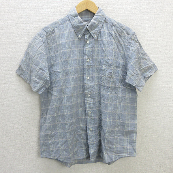 z■ラコステ/LACOSTE 半袖シャツ チェック柄【4】水色/men's/203【中古】