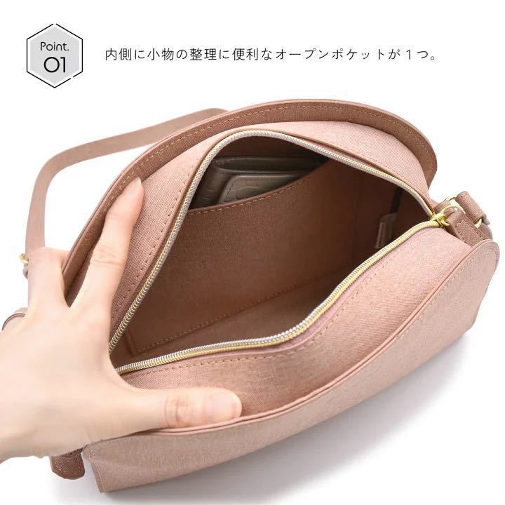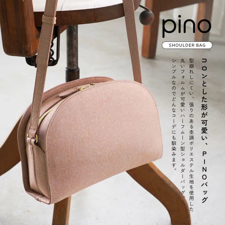 スタッフコメントボンディングした杢調ポリエステル生地をレザーバックのように仕立てたPINOショルダーバッグ。張りのある生地なので、荷物を少ししか入れていない状態でも綺麗なシルエットでお持ち頂けます。