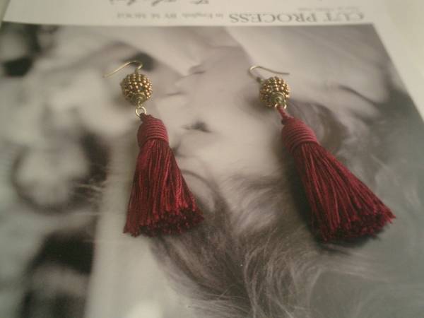 ボヘミアン・ガール・・シリーズです♪オペラ座の夜に・・シックな深い赤のタッセルのピアスです♪6・5センチ位のタッセルにシックなビーズ玉を合わせてクラシカルな表情です♪♪長さは11センチ位です♪♪イヤリングにも変更出来ます♪お揃いのネックレスも出品しています♪シンプルで飽きのこないいつまでも着けられるデザインを考えて作りました♪ハンドメイドをご理解頂いてノークレーム、ノーリターンでお願いします