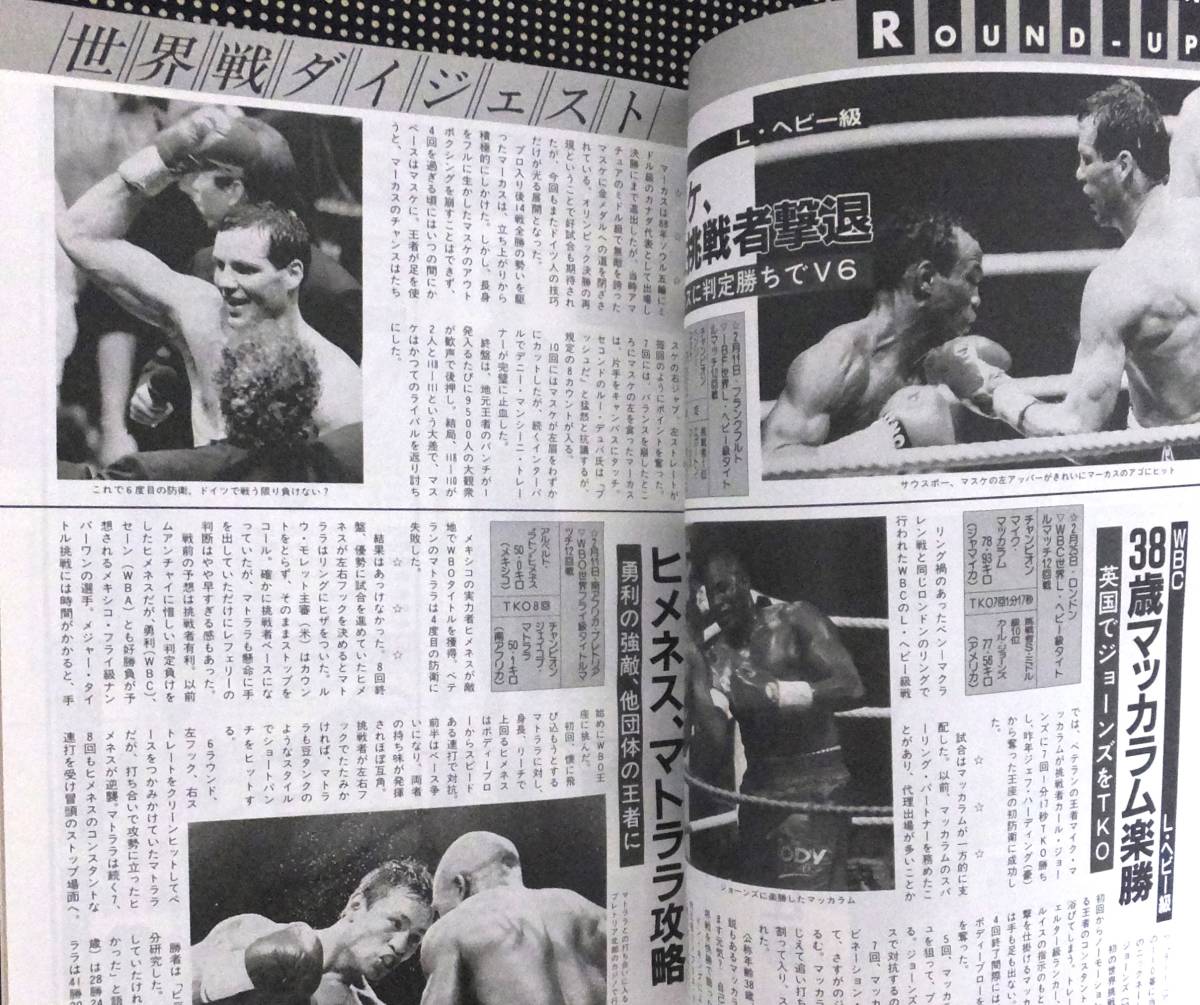 西島 洋介山・川島 敦志 などの記事があり、海外勢では パーネル・ウィテカー の4階級制覇や、オスカー・デラホーヤ の防衛戦などの記事が掲載されています。