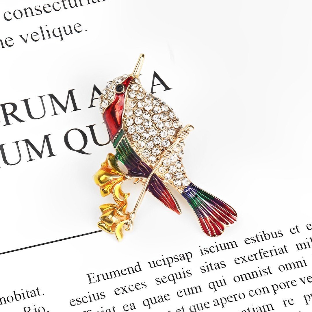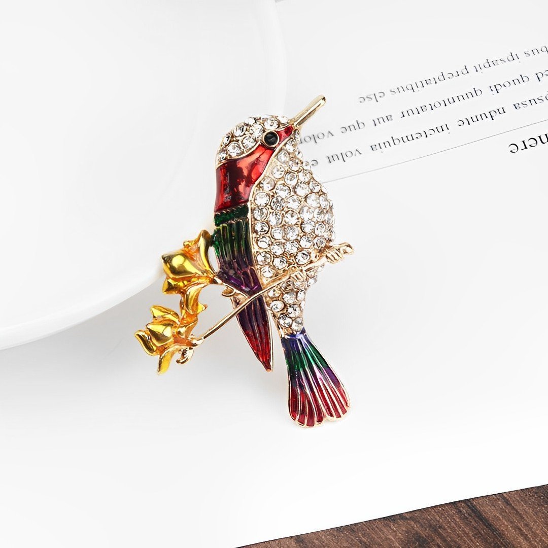 銀杏の枝に立て眺める 小鳥 ブローチ