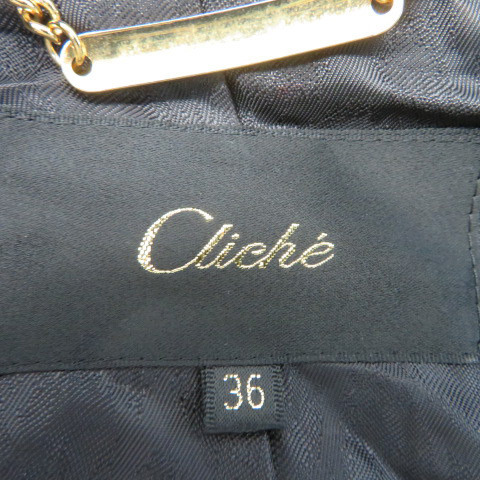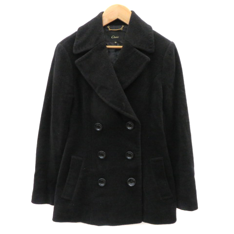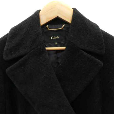 クリシェ Cliche Pコート ピーコート ショート丈 ダブルボタン ヘリンボーン柄 ウール混 36 黒 ブラック /YK3 レディース