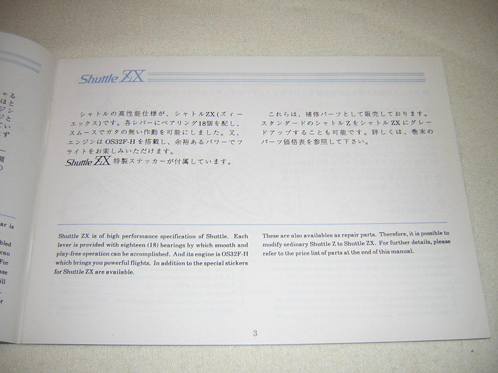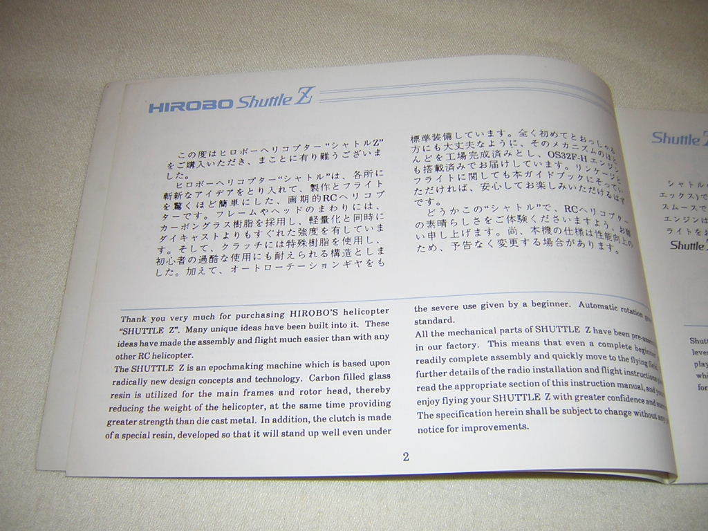 HIROBO ヒロボー Shuttle シャトル Z ZX 組立説明書です。