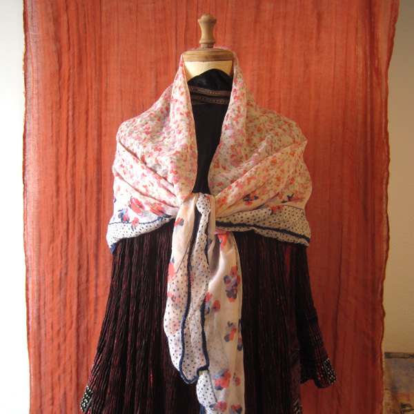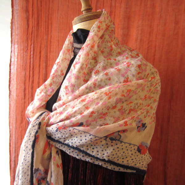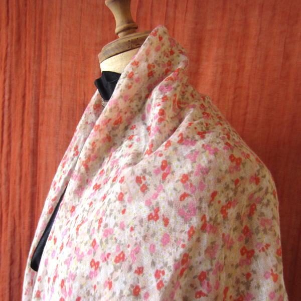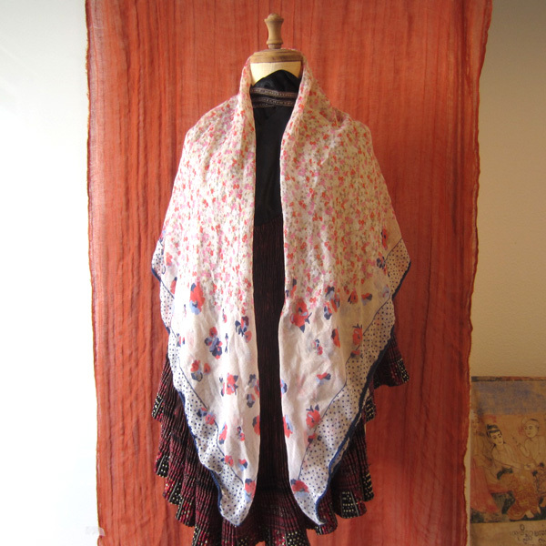 花柄とドットが可愛い大判スカーフです。