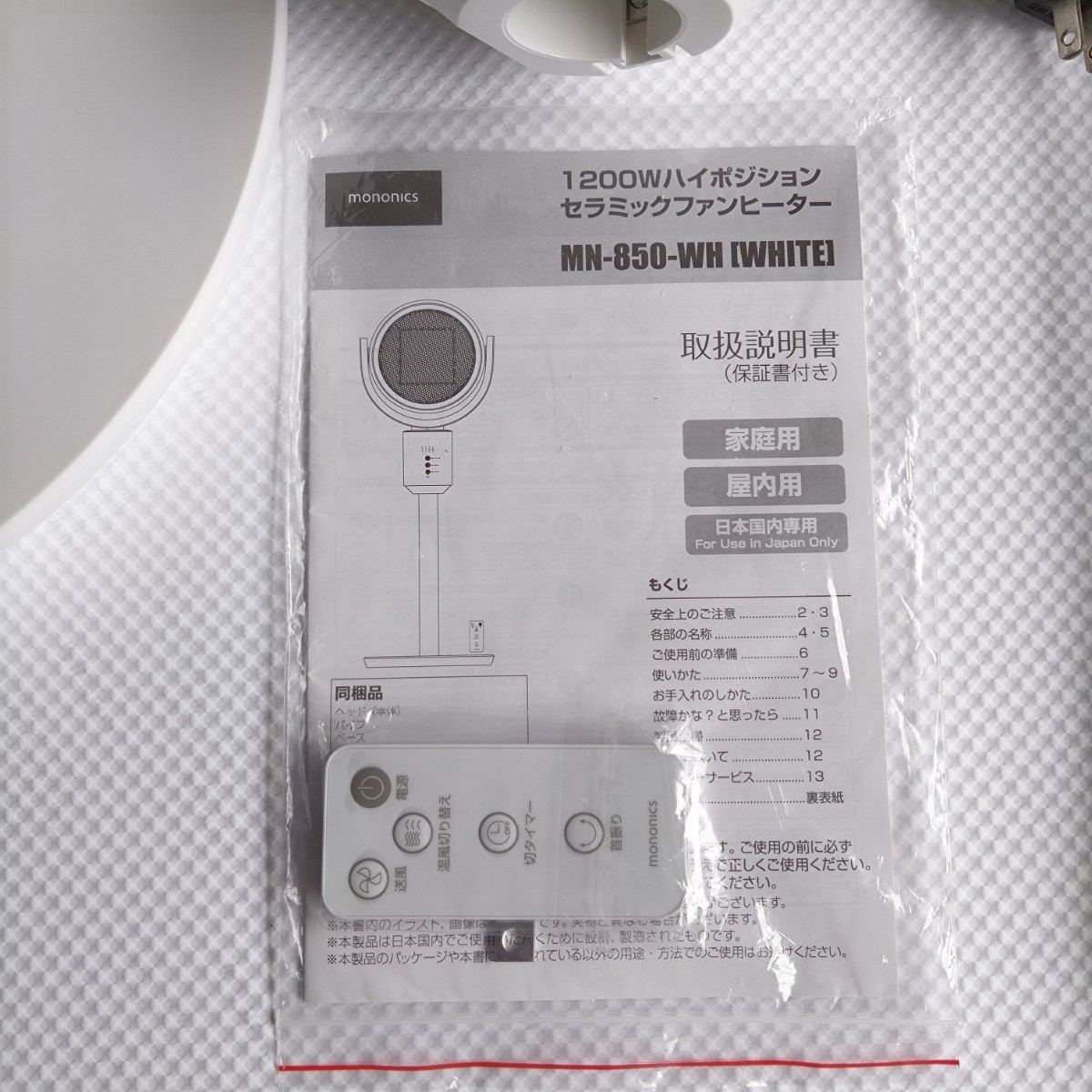 mononics モノニクス ファンヒーター タワー型 動作確認済