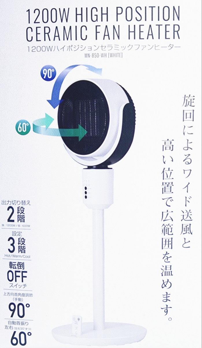 ティーズネットワーク株式会社 mononics 1200W ハイポジションセラミックヒーター リモコン付