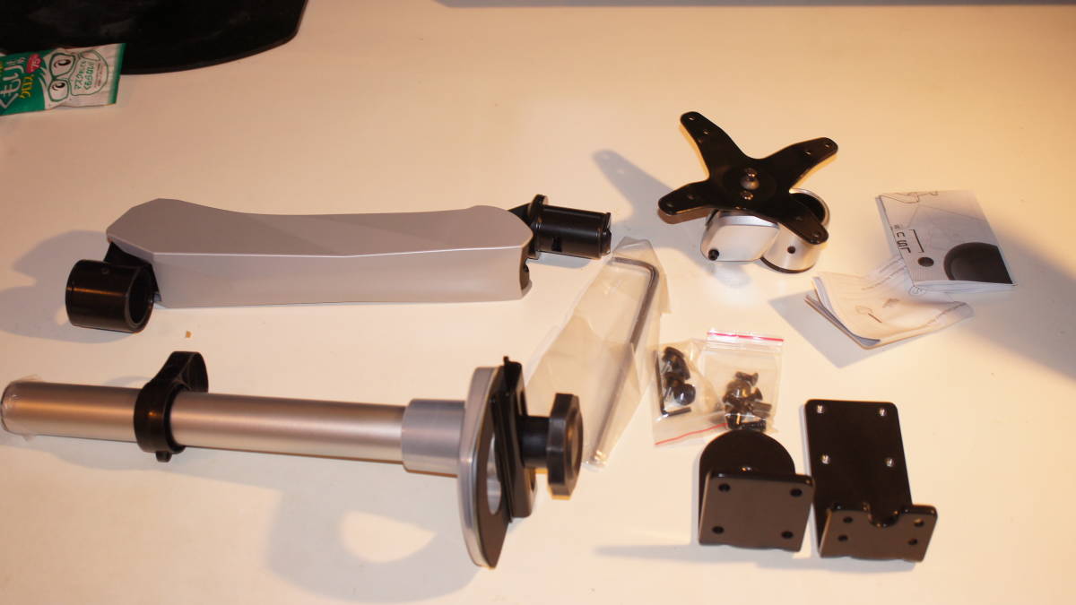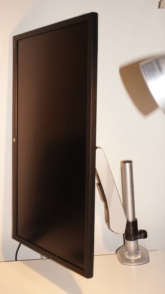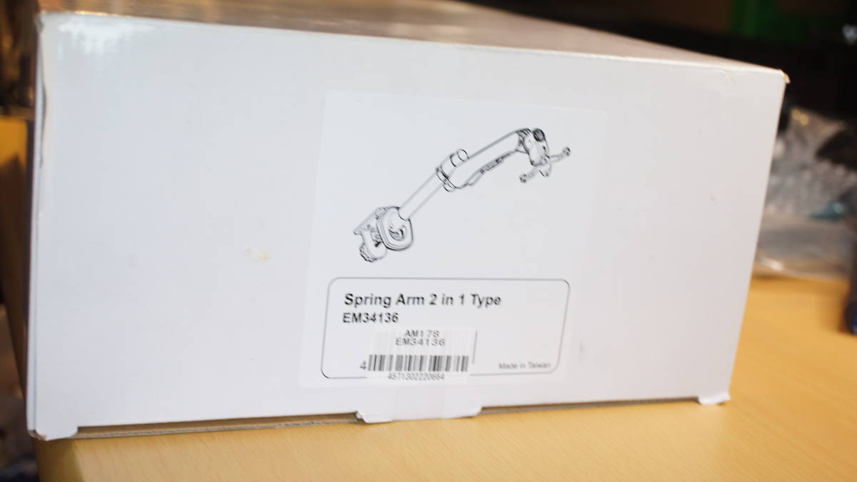 | 商品説明 | お見せしましょう。EM34136の自由度を(Youtube) モニターをアームからワンタッチで外す(Youtube) 高画質スライドショー(Youtube) というわけで、 お盆休みに自分も2個開けて設置してみました。 いやもうホント好き。このモニターアーム。 作りの良さと高い質感が売りです。 ・作りの良さ・ ポール・アーム・モニタヘッドの3ピース構造になっているおかげで、 位置決めのやり直しが非常に簡単でした。 また、モニタヘッドは上記動画の通り、 ワンタッチで取り外すことが可能で、 マジでスゴくとても最高にスバラシイ。 一般的なモニターアームはアームとモニタヘッドがくっついてしまっていて、 モニターをねじ止めするのも重くて一苦労だと思いますが、 このモニターアームはモニタヘッドをモニタに取り付けて、後はアームにガチャコン、で終わり。 エルゴトロンだってこんなことできやしない。 モニター取り付けネジも、 なんとただのなべねじではなく、 ご丁寧に手回しネジなのですよね。 もう本当にもうね。判ってますね。 もうモニターアームにモニターを取り付けるに当たって、 先端がマグネットになっているドライバーを買う必要も無いし、 ネジを落っことしてイライラすることもない。 ドライバー要らない。手でネジが締められる。スバラシイ。 これで良いんだよこれで。 モニタヘッドについても、 雲台のようなピロボール構造になっているおかげで、 回転チルトが自在ですね。(写真8・9) ついでに液タブがイケるのか?ということで、 Cintiq 22HDを想定して写真10枚目を撮りました。 机の奥行きやポジション次第とはなりますがイケそうな予感。 ちなみに写真のモニターサイズは28インチ(HP V28 4K)で、 縦幅については22HDと同じくらいだったはずです。 また、アームをポールの一番下にしても28インチを縦画面にできる(写真8)、 ということは、 このモニターアーム、40型4K液晶をラクラク搭載できると思います。 以前出品したことのある、Philips 4Kモニタ BDM4065UC/11とか。 あのモニタ、スタンドを外すとギリギリ9kgを切っているので、重量的にも大丈夫そう。 ・高い質感・ 全体的な塗装や、ネジ精度が非常に非常に素晴らしい・・・。 ここハマらないんだけど!?とか、ここズレてない!?みたいなことがなく、 ピタッと決まりますね。 ポールも恐らくアルミダイキャストで、 なめらかなサーフェイスはもちろん、 その辺の安っすいモニターアームの鉄ポールとは違って、 長期利用しても錆びて汚くなることもないでしょう。 加えて、鉄ポールに比べてかなり軽量なので、位置決めで動かすときにも楽でした。 銀色の部分で唯一アーム部のカバーだけはプラスチック製なのですが、色も揃っていて統一感は失われていませんね。 あと、もちろん各部の硬さは調整できますね。 スプリングの硬さも調整できます。 といっても、HP V28 4Kも、となりのジャパンネクストの28型も、 スプリング硬さはデフォルトのままで大丈夫でした。 デフォルトのままで冒頭のグリングリン動画を撮っています。 というわけで、 さすが元値10000円オーバー。 「マジハンパねぇ」です。 今すぐにどうぞ。 自分で2本開けてしまったので、残りは2本。 この2本で終わり、ガチで早い物勝ちです。 0〜110mmの厚さに対応したクランプ(C-Clamp) 20〜45mmのグロメット 取り付け可能なテーブルの厚さ:20〜60mm 本体重量:2.8kg 荷重範囲:2〜9kg 昇降:0から200mm 前後:0から200mm チルト:105° パン:360° ピボット(ローテーション):360° 垂直:0〜270mm アーム回転(swivel):360°