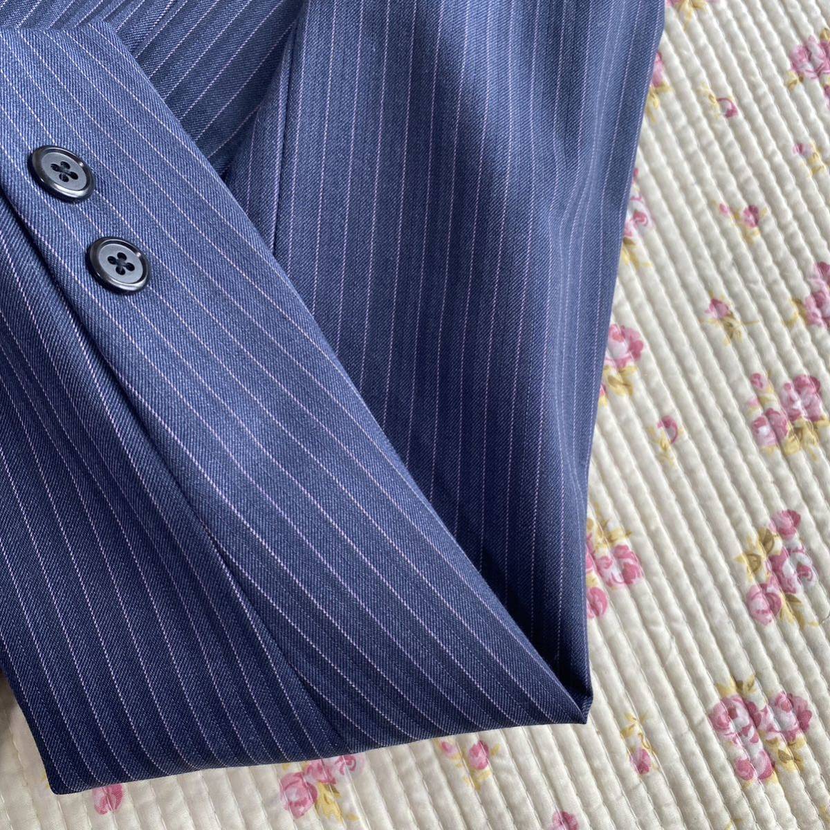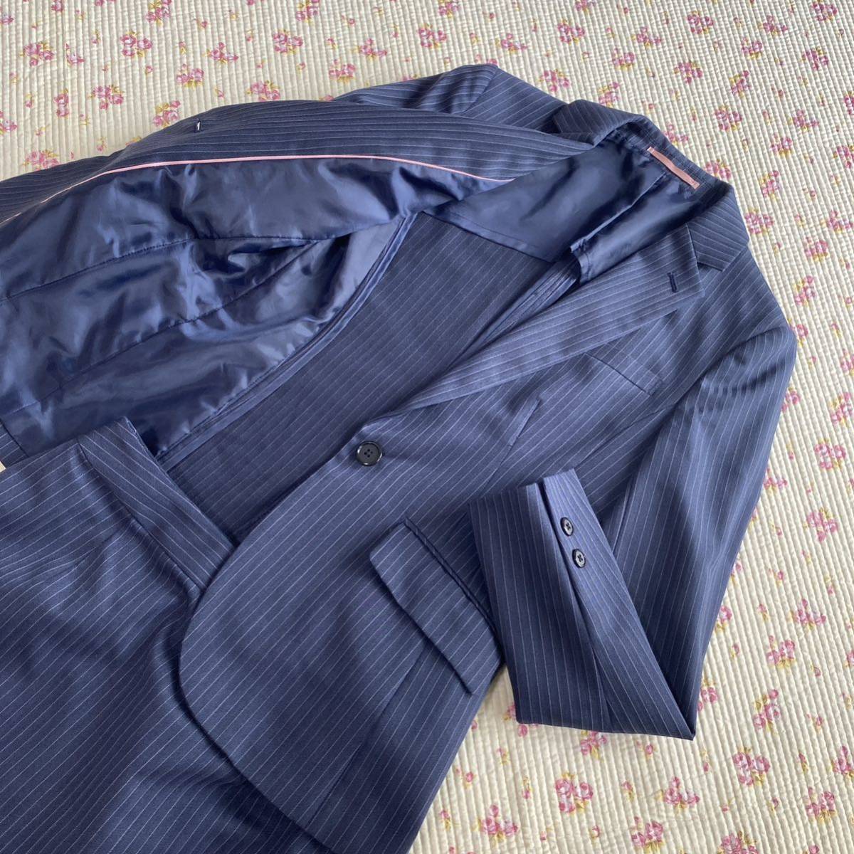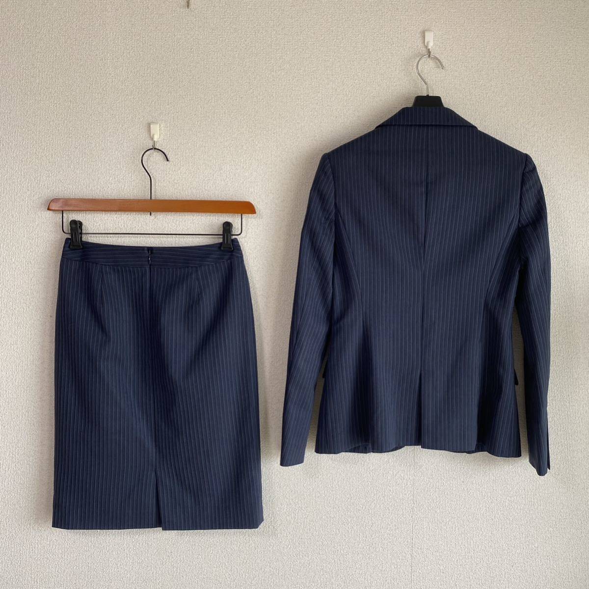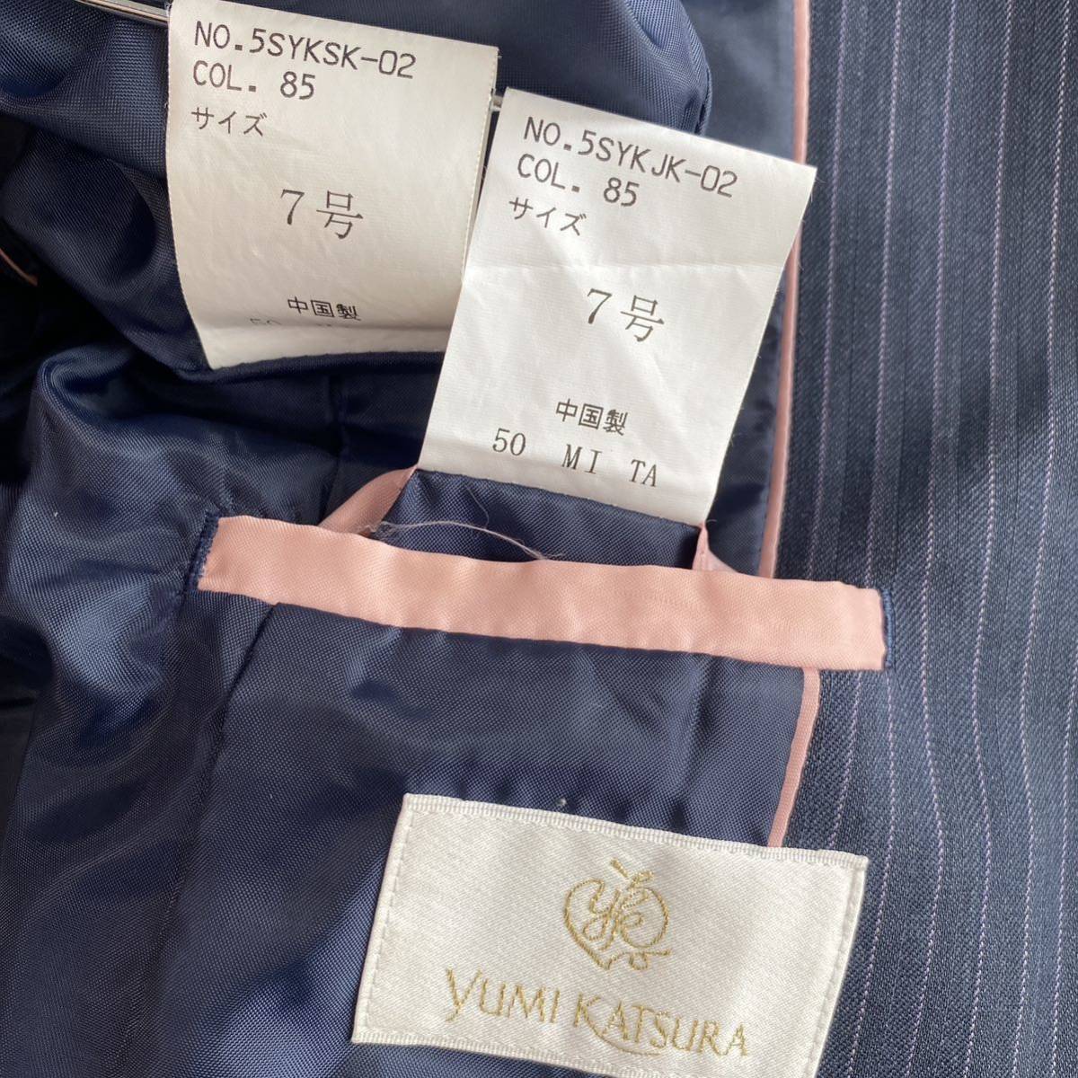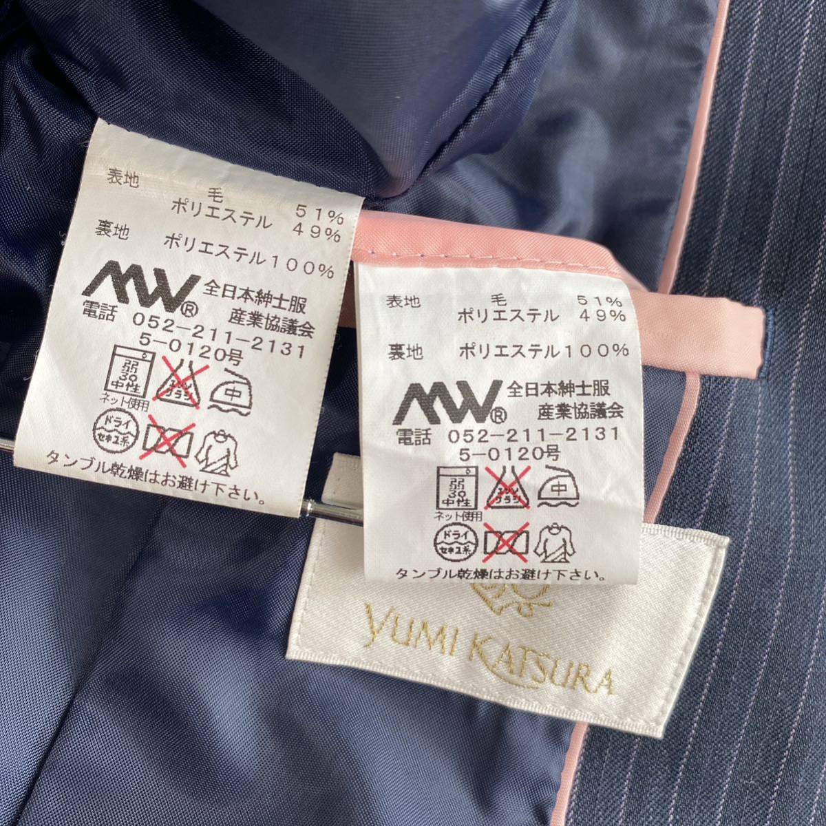 ご覧いただきありがとうございます。染み、よごれ、ほつれのない、自信を持ってお勧めできる【新品同様】の良いお品を提供致しております。【極美】ユミカツラ スカートスーツ 7 W64 OL 濃紺 ピンクストライプ DMW でございます。ユミカツラ(Yumi Katsura)の【新品】スーツを、お買い上げ予定の方にお勧めできる、【美品】です。上品で、清楚な雰囲気で着こなせます。面接、ビジネス、学校行事にお勧めです。お色は画像でご確認下さい。濃紺、ピンクストライプです。背抜き仕立てです。洗濯可能の上質生地が使われています。1つボタン。袖口にボタンが2つ付いています。センターベント。ジャケット、外ポケット×3。内ポケット×1。スカート、センターバックファスナー、ポケット×0。スリットあり(背面、約11センチ)。脇染み、汚れ、ほつれのない【新品同様】の【超極美】、とてもきれいなスカートスーツです。襟周りや袖口に擦れや汚れのない、ほぼ【新品】のお品なので、サイズの合う方に是非お勧めします。