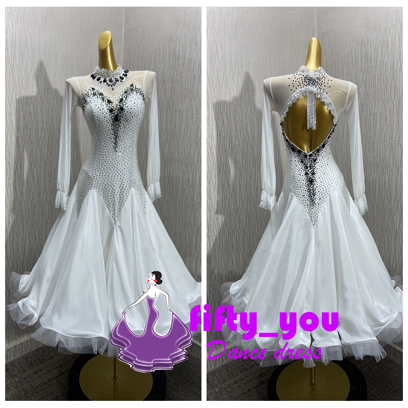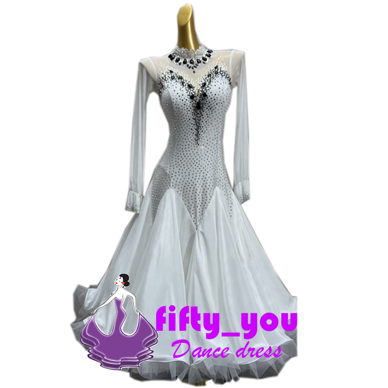 新品fifty_you NEW 競技試合素敵モダンドレス レディース社交ダンス衣装 セミオーダー センスのある女性の印象 ライトストーン飾 ホワイト