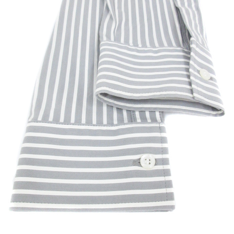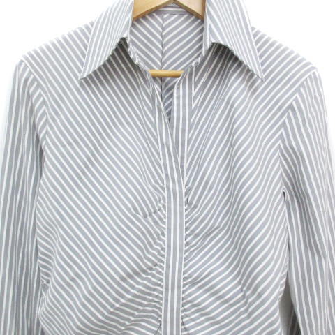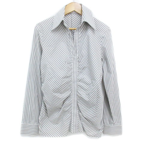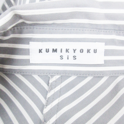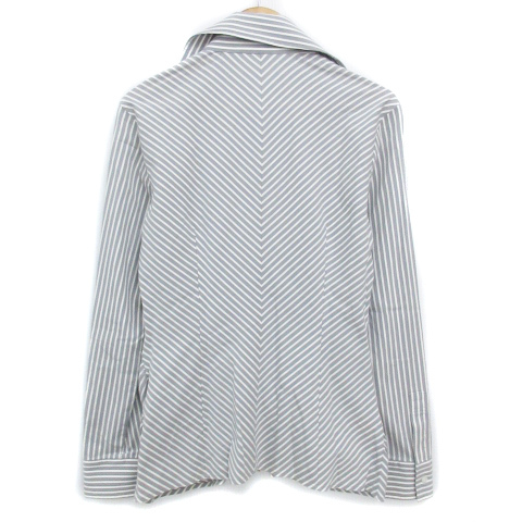 組曲sis クミキョクシス シャツ ブラウス 長袖 スキッパーカラー ラメ ダイアゴナルストライプ柄 2 グレー 白 ホワイト /FF46 レディース