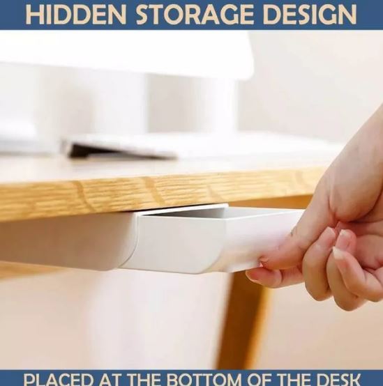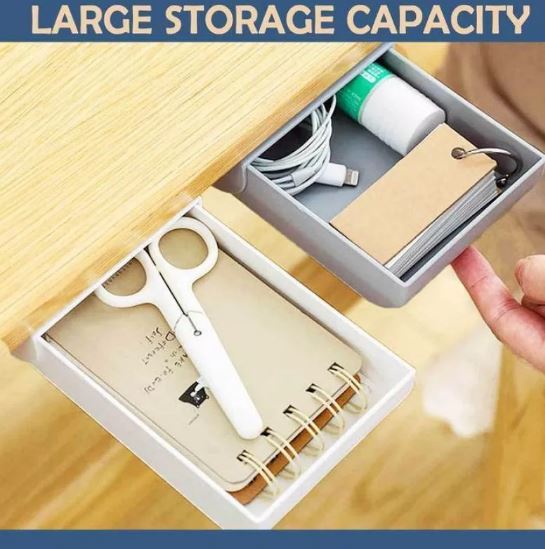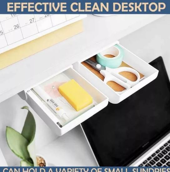 パンチでのテーブル引き出しデスクトップ収納引き出しオーガナイザーボックス(ホワイト)机の下自己スティック文房具データケーブル